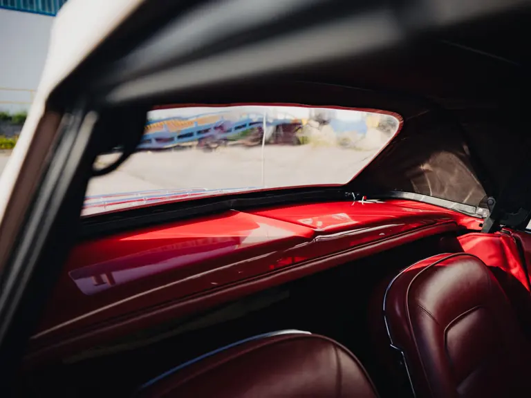 - Originally Ermine White, now Rally Red over a red vinyl interior