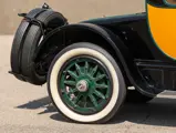 The Model 48 offered here is one of the few happy exceptions to the Locomobile rule, in that it is sporty indeed, thanks to a handsome coupe—or “three-passenger sedan”—body that bears the maker’s plates of Locke & Company, a respected New York coachbuilder. Finished in a rich emerald green and yellow, it boasts an interior accommodating two to three persons on overstuffed brown leather seats, with broad, round cushions that feel like favorite armchairs, and a yacht-like dashboard boasting a full complement of Locomobile-badged US-brand gauges. It is believed to retain much of the original upholstery and interior woodwork.
