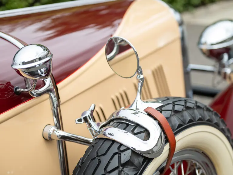 The example offered here, the 8-90 or “Little Eight” model of 1929, is believed to have been restored in the late 1980s or early 1990s, with steel speedster bodywork evoking the original design, including its striking two-tone paint treatment in maroon and ivory. At one time offered by Oliver Classics of New York, it was later acquired by Charles J. Noto, who had admired the Auburn speedsters for many years and sought to add a fine, driver-quality example to his own collection. It has remained part of his stable since, displayed in his private showroom.