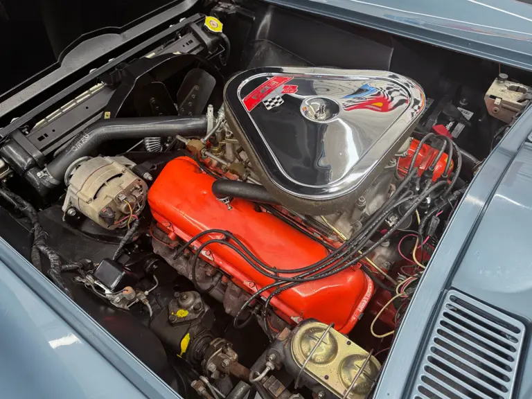 Consummate Corvette enthusiast and previous owner Lynn Haas restored this Sting Ray Convertible some years ago to a “factory” standard coveted by purists, which is to say with incredible attention to even the tiniest of details that result in the vehicle’s perfectly imperfect presentation. Overspray on the intake manifold, inspection markings, and the overall panel fitment accurately represent how the vehicle would have rolled off the assembly line, according to Haas. Only a Hurst shifter installed by the current owner deviates from this standard—however, the stock unit is included in the sale. Importantly, the serial number stamping on the engine block matches the serial number of the vehicle, as does the stamping on the gearbox. Unsurprisingly, following completion of its restoration, the car was Bloomington Gold Award Certified in 2003. A digital copy of the certificate is on file.