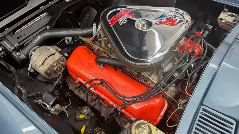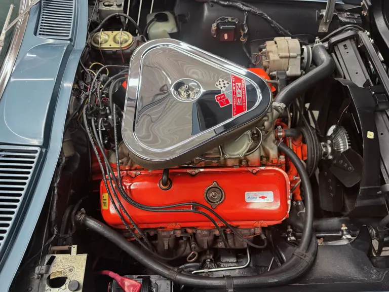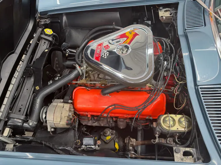 Chevrolet closed out the production run of the original Corvette Sting Ray with an especially potent engine, the 427-cubic-inch L71 V-8 with an 11:1 compression ratio, three two-barrel Holley carburetors, a solid-lifter camshaft, and enlarged valve heads—good for 435 horsepower at 5,800 rpm delivered through a close-ratio Muncie M21 four-speed manual transmission. It made the Corvette a true all-engine beast, the equal of other high-powered American performance cars of the muscle car era.
