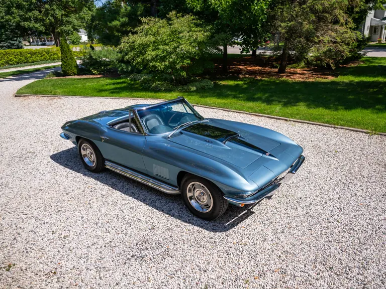As shown on the copy of its purchase form on file, this Corvette was sold through McKinney Motors in Marshall, Missouri, optioned with a tinted windshield, 15-inch wheels, dual side exhausts, a racing stripe, power steering, and a 370R Positraction axle. Lastly and most significantly, the document confirms the selection of the coveted L71 big-block with a close-ratio transmission, resulting in a substantial $5,452.80 original manufacturer suggested retail price. The taut and purposeful body lines are covered in correct Lynndale Blue over a black vinyl interior. Just 1,381 Corvettes left the factory in this shade, making it the third rarest paint option for 1967, behind Elkhart Blue and Tuxedo Black.