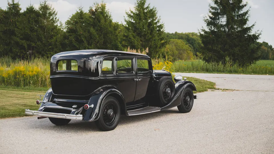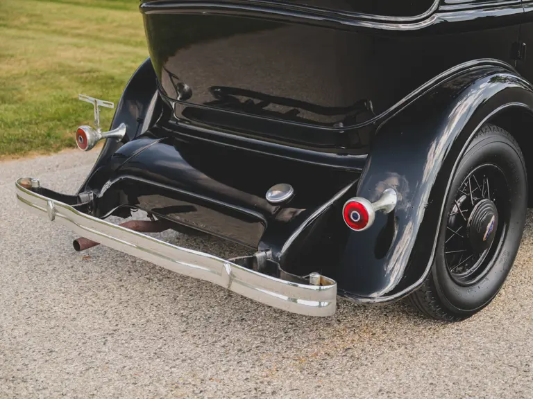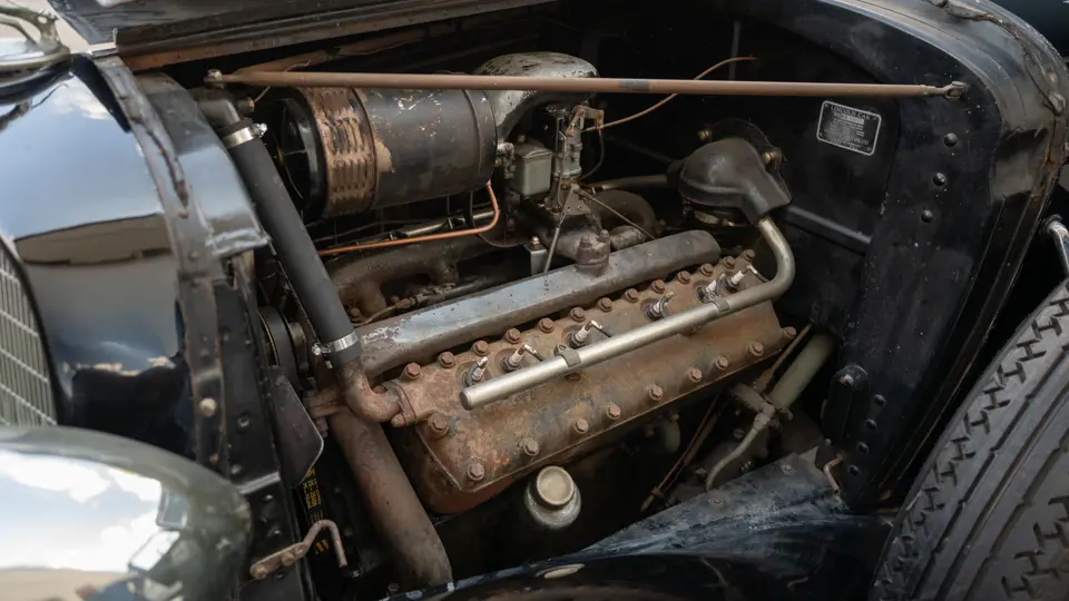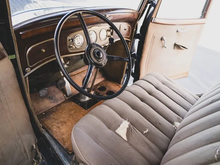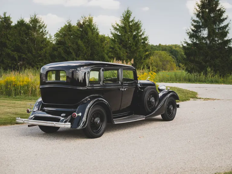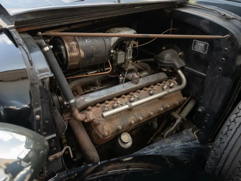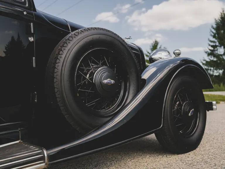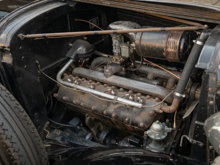 The Model KA offered here was one of 425 produced in 1934 in this style—the four-door sedan, number 525—and was conservatively finished in black with matching wire wheels and blackwall tires; dual side-mounted spares were the only notable accessory. It was shipped to its first owner on 8 February 1934. Reportedly, a wealthy family in Southern California purchased it new and enjoyed it for over 40 years. After their ownership it was donated to a museum, where it remained on display until its acquisition for the revered Andrews Collection in Texas, where it was a favored “driver” for several years.