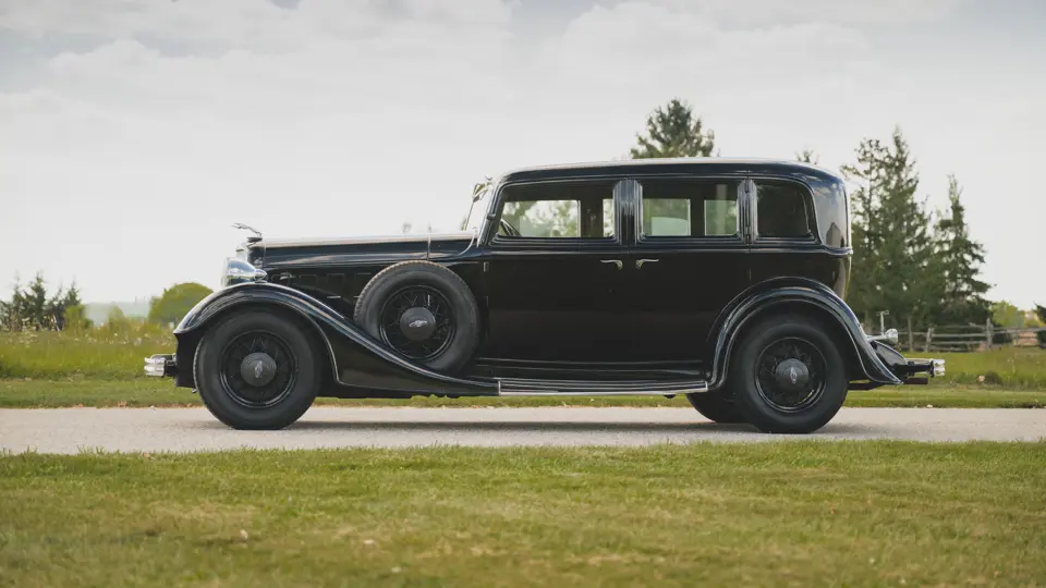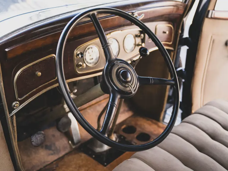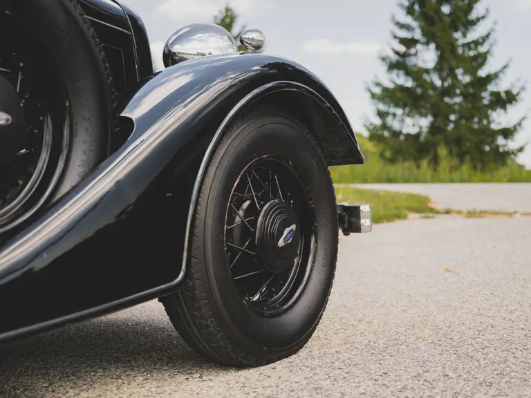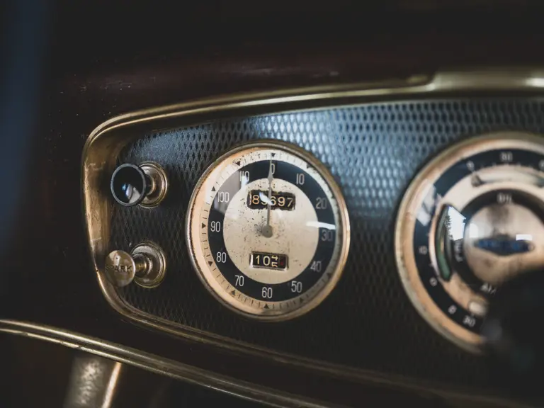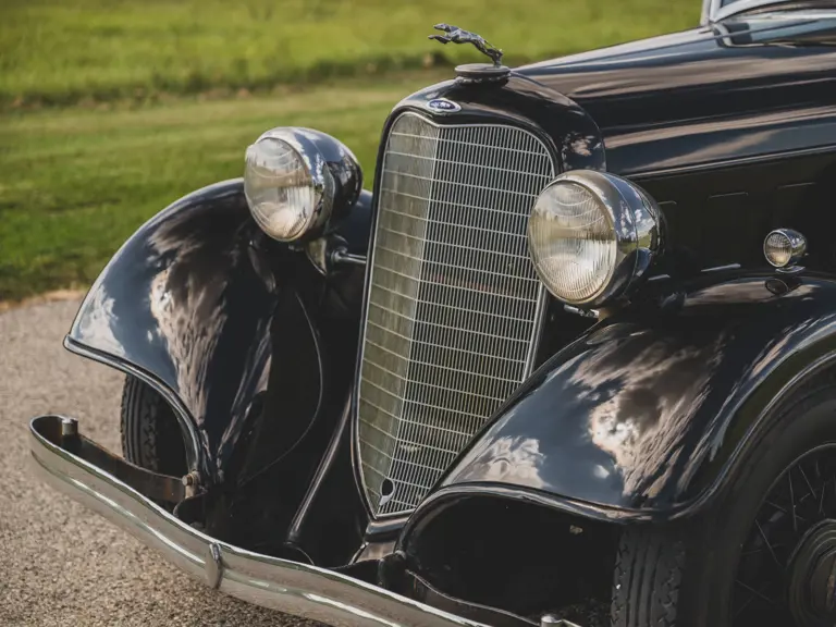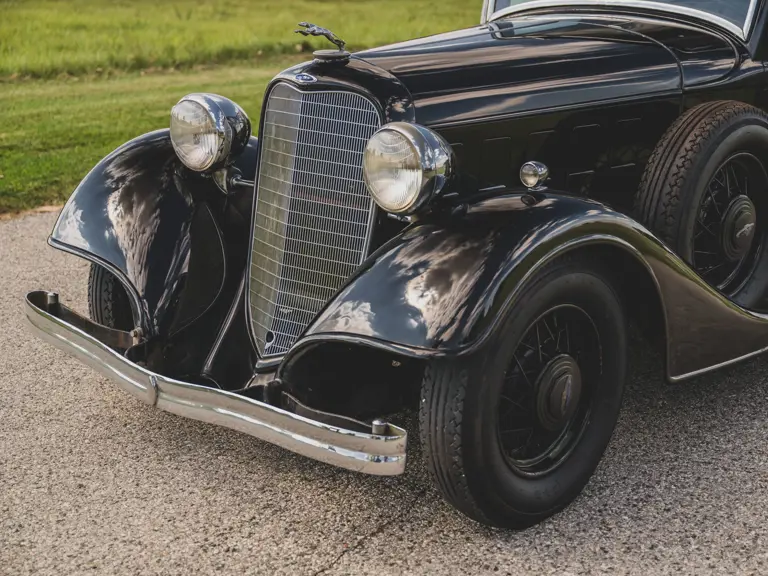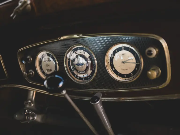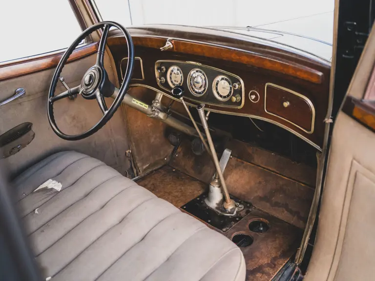 The Model KA offered here was one of 425 produced in 1934 in this style—the four-door sedan, number 525—and was conservatively finished in black with matching wire wheels and blackwall tires; dual side-mounted spares were the only notable accessory. It was shipped to its first owner on 8 February 1934. Reportedly, a wealthy family in Southern California purchased it new and enjoyed it for over 40 years. After their ownership it was donated to a museum, where it remained on display until its acquisition for the revered Andrews Collection in Texas, where it was a favored “driver” for several years.