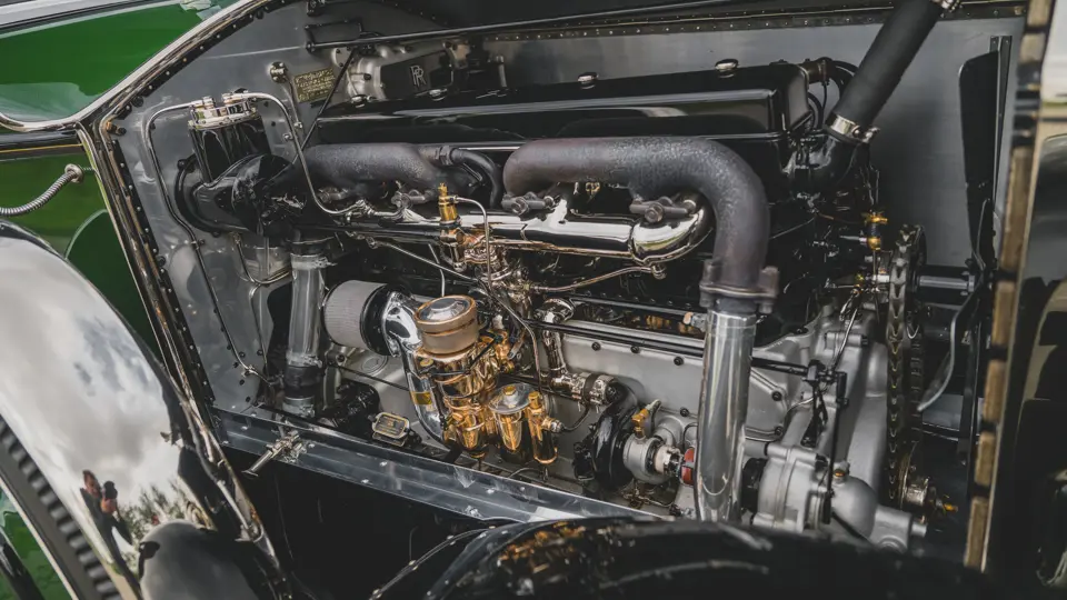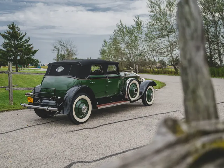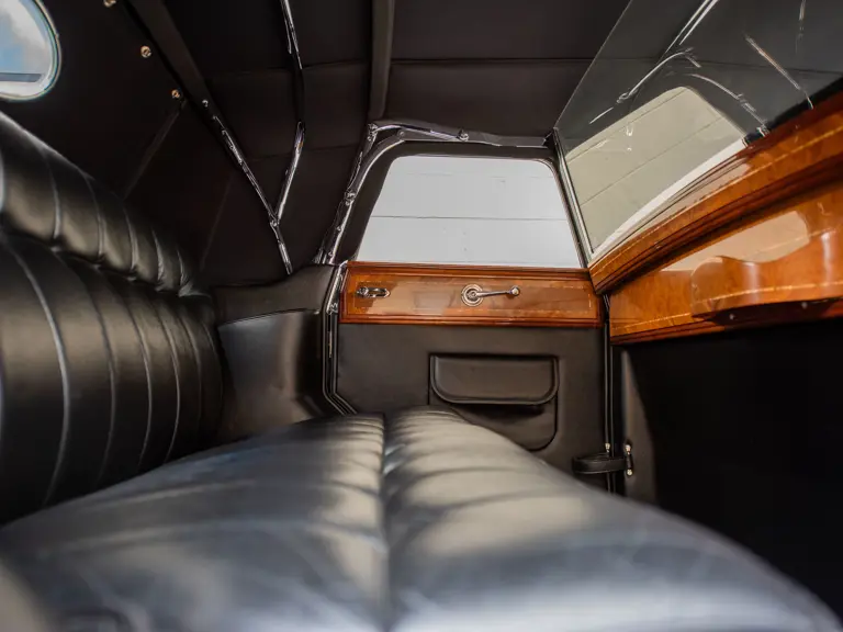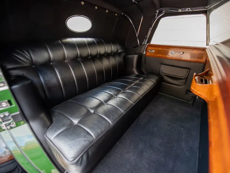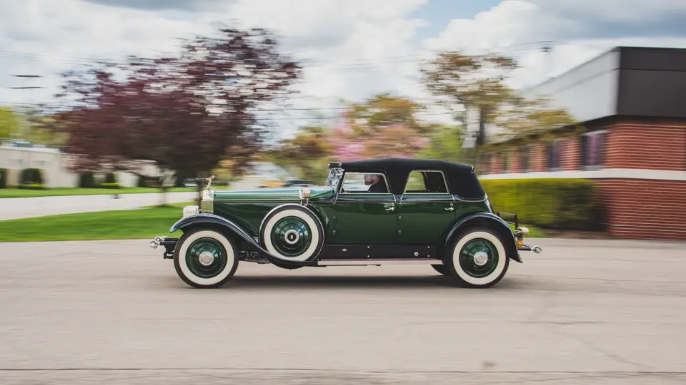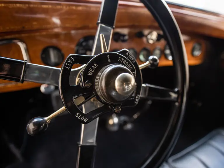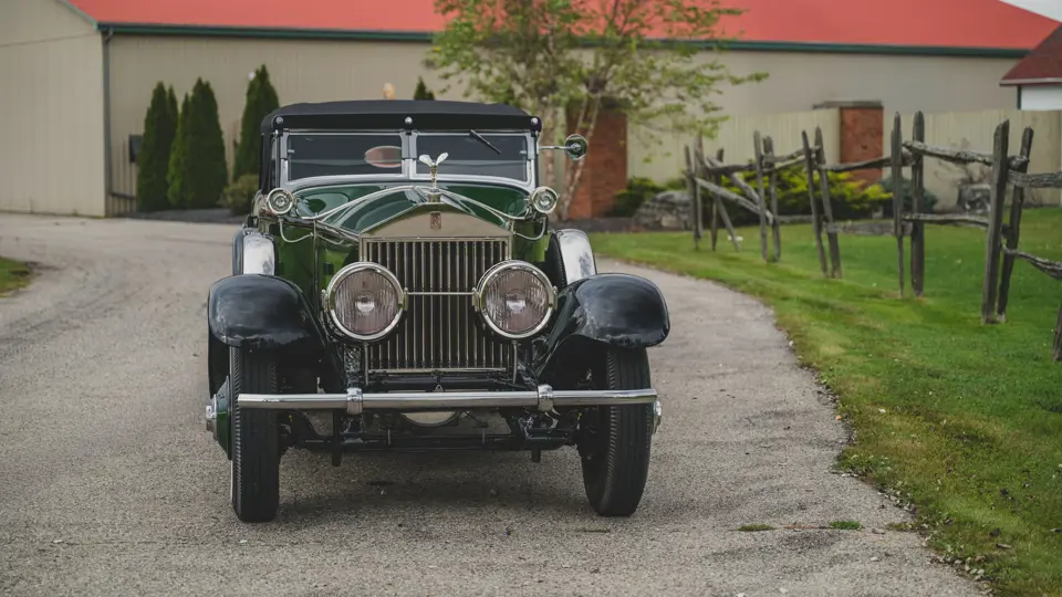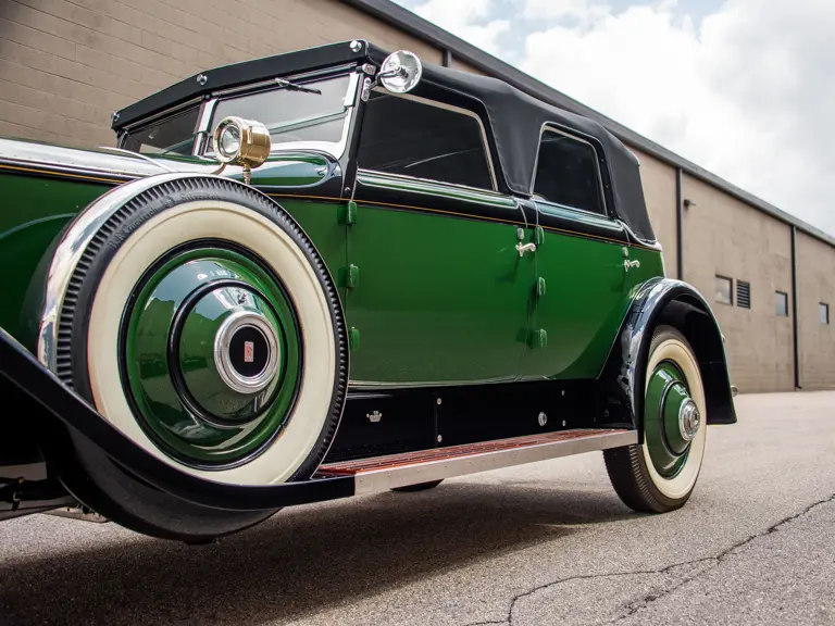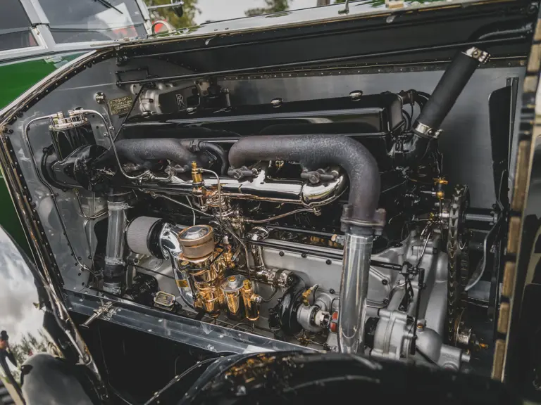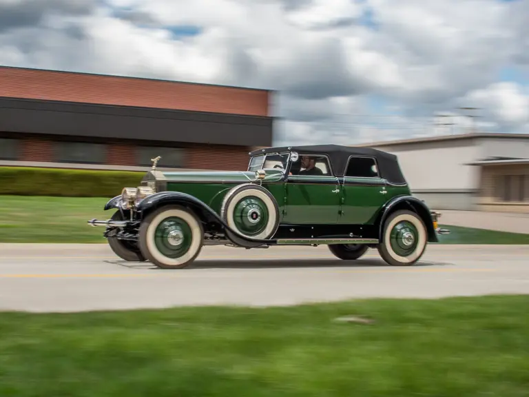 Noted collector John O’Quinn acquired the Phantom I from Mr. Morrison in 2007 and submitted it to marque expert Rick Hamlin of Wellington, Kansas, to receive an exacting, multi-year restoration to original specifications. Hamlin’s team entirely disassembled the original coachwork, revealing fascinating details of Hibbard & Darrin’s patented Sylentlyte cast-Alpax construction method, as well as remnants of the original, subtly iridescent medium green finish, which was fastidiously recreated. Similarly, the interior was fully restored to its original appearance, complete with the correct fine hardware and book-matched wood inlays for which the coachbuilder was justly renowned.