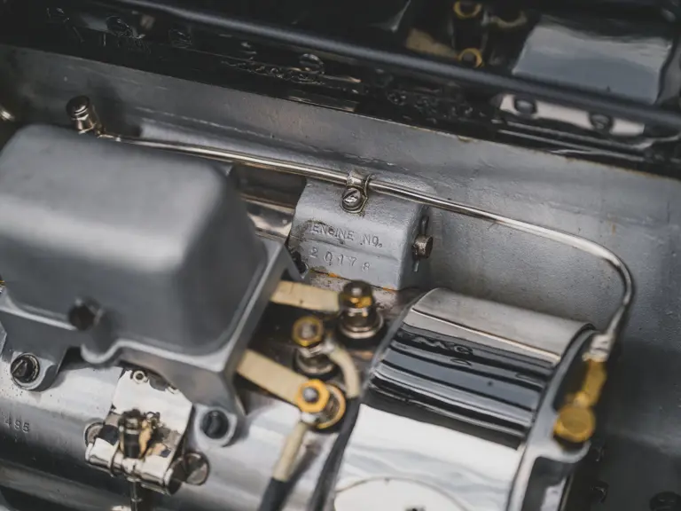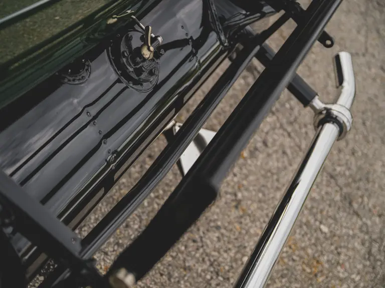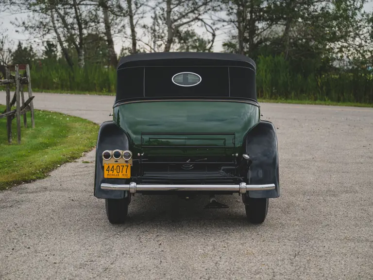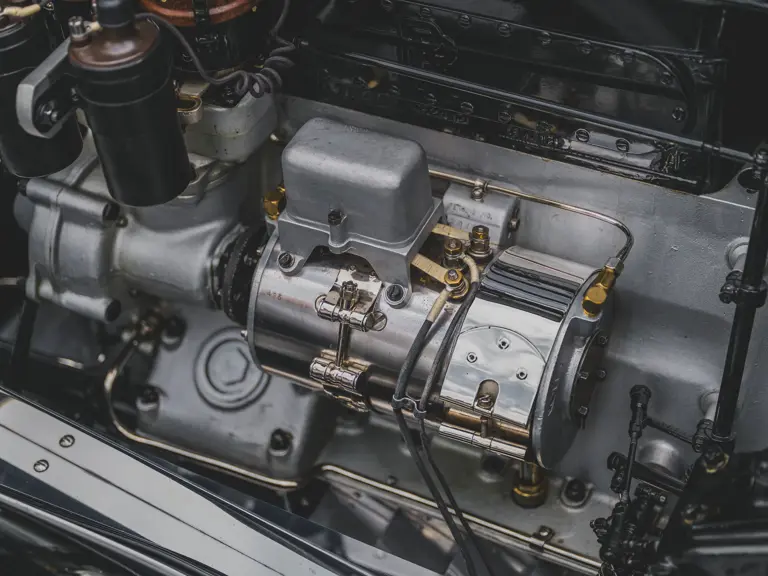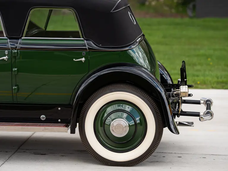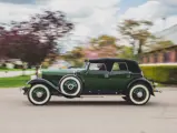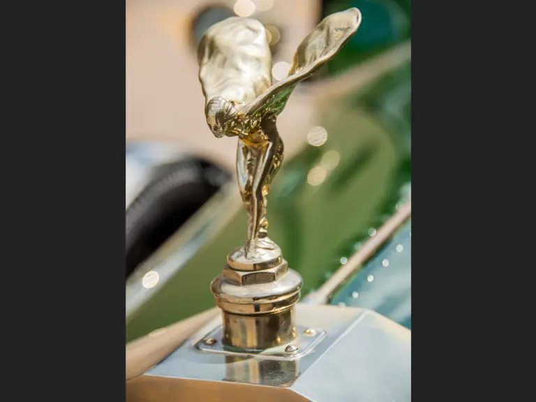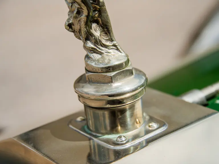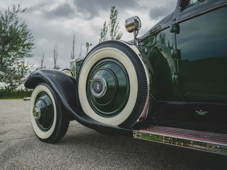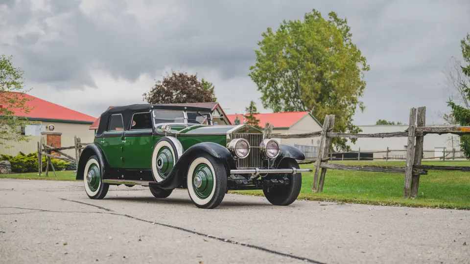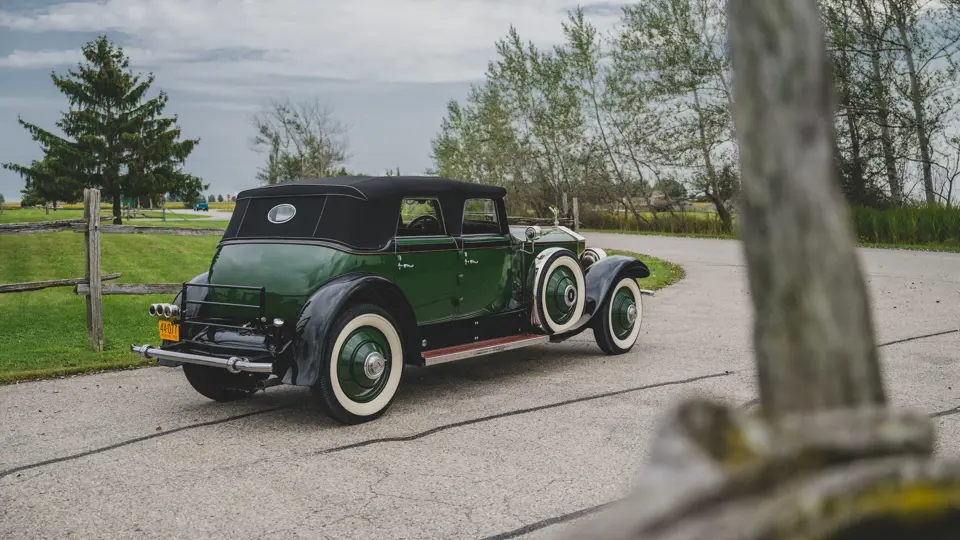 Noted collector John O’Quinn acquired the Phantom I from Mr. Morrison in 2007 and submitted it to marque expert Rick Hamlin of Wellington, Kansas, to receive an exacting, multi-year restoration to original specifications. Hamlin’s team entirely disassembled the original coachwork, revealing fascinating details of Hibbard & Darrin’s patented Sylentlyte cast-Alpax construction method, as well as remnants of the original, subtly iridescent medium green finish, which was fastidiously recreated. Similarly, the interior was fully restored to its original appearance, complete with the correct fine hardware and book-matched wood inlays for which the coachbuilder was justly renowned.
