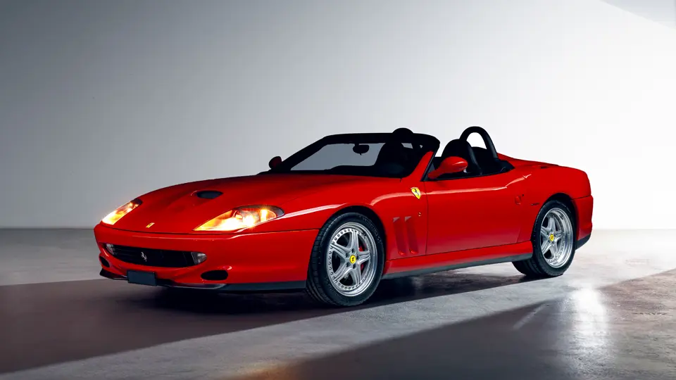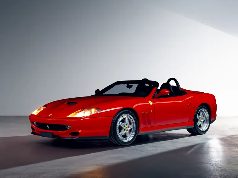 Like the Daytona, the 550 Maranello’s success warranted the production of a limited-edition variant. First displayed at the 2000 Paris Motor Show, the svelte open-top model was designed by Pininfarina. With only a rudimentary soft-top for emergency use when caught in the rain, the Barchetta featured a shorter, more aggressively raked windscreen, two-piece alloy wheels, racing seats, and a restyled rear deck that led to a boot notably larger than that of the coupé. Only 448 examples were built, and they have become a “core” model for any Ferrari collection due to their provenance and acclaimed gated-manual, open-top driving experience.