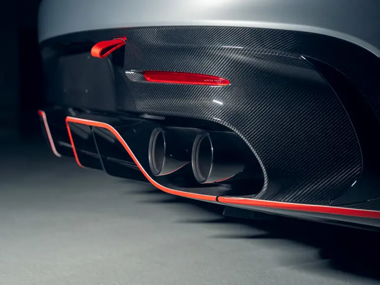 At its core lies a significantly reworked version of the 4.0-litre twin-turbocharged V-8, now producing 734 horsepower and 627 pound-feet of torque. Equipped with a Hewland six-speed transaxle sequential gearbox, four-way adjustable Bilstein dampers, and motorsport-derived aerodynamics, the Track Series delivers supreme circuit capability.