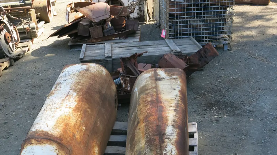 Large HVSS Sherman Parts lot, including NOS Radiator, Track, Road Wheels, Drives, Motors, Rollers, Gas Tanks, And Seats