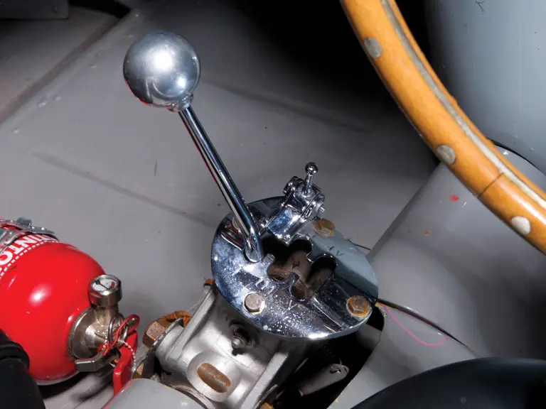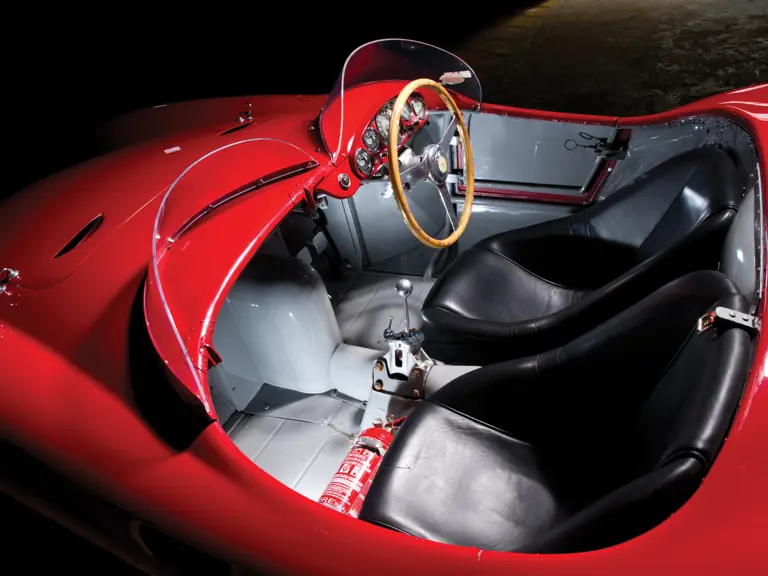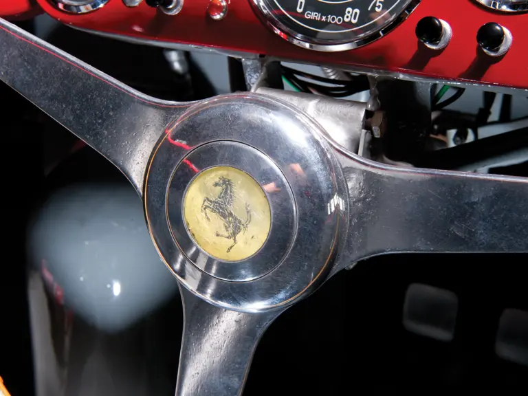 The Ferrari on offer today is unique. S/n 0502 M is the only 750 Monza Scaglietti Spyder built without the customary headrest. California sportsman William Doheny bought the car for his driver Ernie McAfee to race, but Doheny intended to drive it on the street and apparently thought the headrest might attract police attention. Quite how he expected to sneak around Beverly Hills in a 164-mph race car with a straight-through exhaust was never explained.