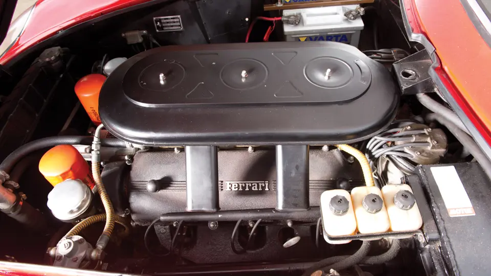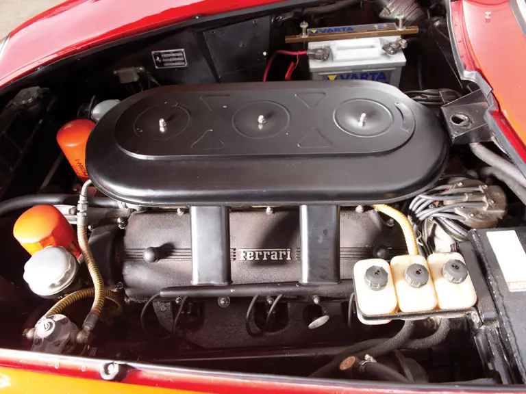 With the final evolution of Ferrari's relatively small-displacement Colombo V-12 under its hood, the 275 GTB was an extraordinarily rev-happy machine, even by Ferrari standards. In a period road test, legendary Hollywood star and automobile enthusiast Steve McQueen described the smooth action of the five-speed manual transaxle as “like sliding a knife through butter.” It helped get the most out of the Colombo's enlarged 3,286-cc displacement. Weighing merely 1,200 kg, the 275 GTB easily accelerated from rest to 60 mph in a scant 6.3 seconds.