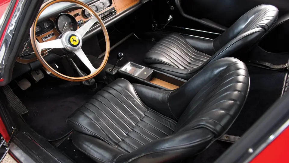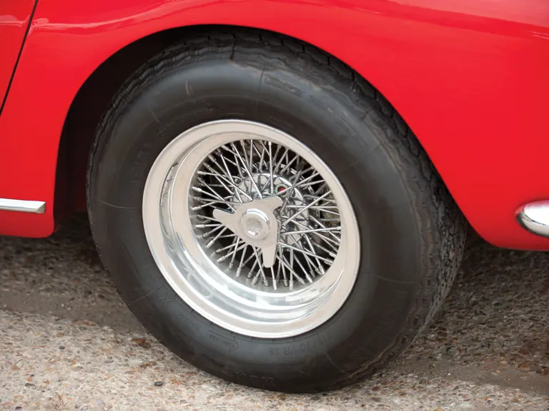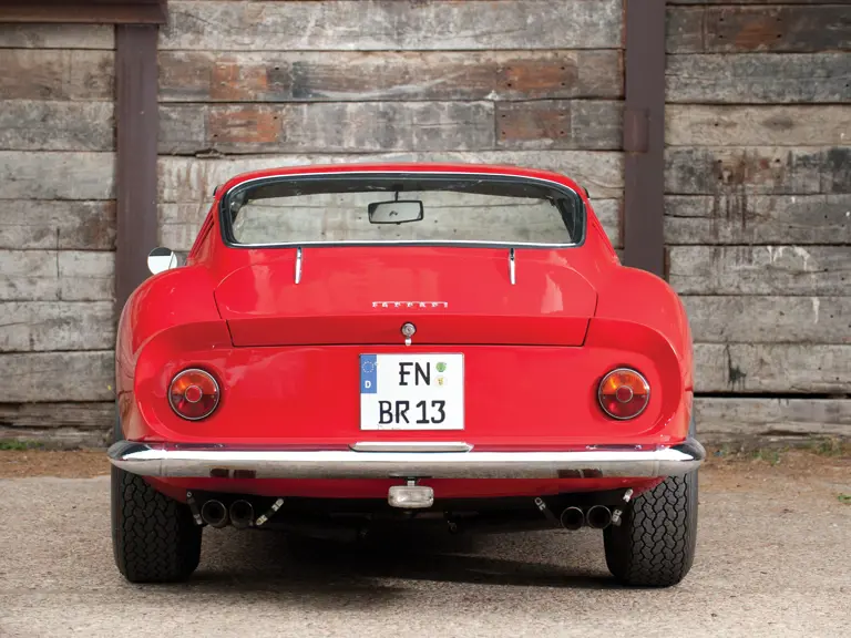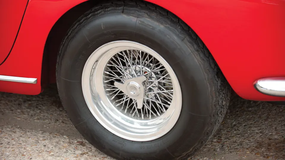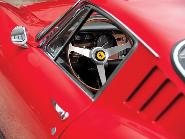 Eventually the lightweight alloy-bodied 275 GTB returned to Europe and was owned by Klaus Brand of Germany, the cofounder of renowned alloy wheel company BBS, which has outfitted some of the most desirable sports and racing cars for several decades. During Mr. Brand’s ownership, the car was repainted red. The car remained in Mr. Brand’s possession until 2008. Today the car sports a correct set of Borrani wheels, which certainly lend a very sporting character to its appearance.