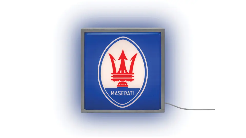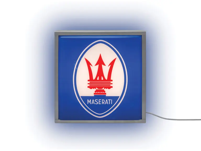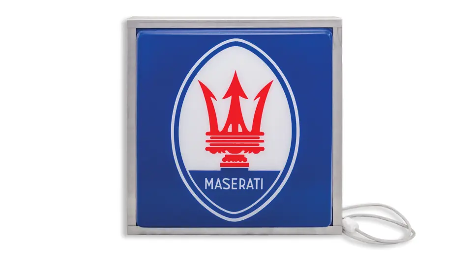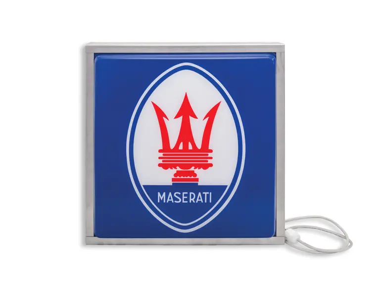 This illuminated, dealership-style Maserati sign presents in excellent condition throughout. It would be a fun addition to the garage of any Maserati enthusiast.