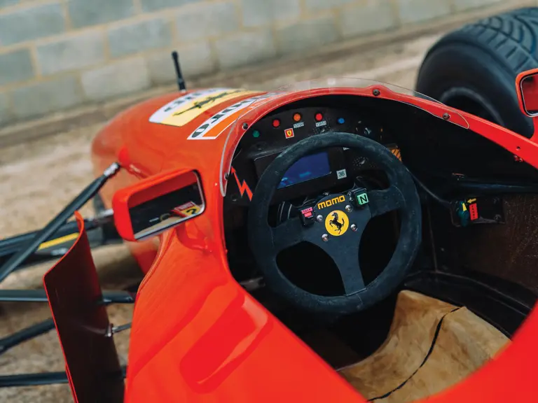 This particular car, the second of eight 412 T1s constructed, was sent to the first round of the 1994 World Championship in Brazil with Alesi nominated to drive. In qualifying, the charismatic French-Sicilian gave a much-needed boost to team morale with a promising 3rd place on the grid—albeit almost one and a half seconds away from the pole-position time set by Senna’s Williams and over a second shy of Schumacher’s 2nd-placed Benetton. In the race, Alesi made an excellent start to pass Schumacher into the first corner, only to be re-passed by the German on the second lap. On lap 18 the Ferrari was demoted to 4th by the Williams of Damon Hill, where it would remain for much of the race, although an uncharacteristic spin into the gravel by the erstwhile Senna with only 16 laps remaining handed Schumacher the race win and promoted both Hill and Alesi to 2nd and 3rd, respectively. Although a podium finish was richly deserved, celebrations at the Scuderia were tempered by the fact that Alesi’s fastest race lap was almost exactly two seconds off that of race winner Schumacher—and that the wunderkind had managed to lap the entire field in a little over an hour and a half. Clearly there was still much catching up to do.