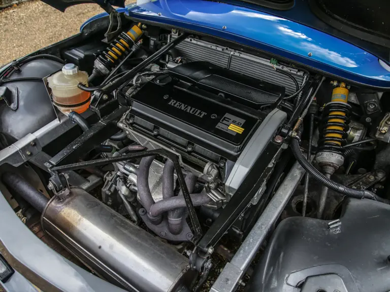This particular car is one of only 60 UK delivered examples, specified in blue/grey metallic with black Recaro sports seats and optional front cargo bucket. Being a UK car, it also benefits from having a fixed windscreen to which an emergency rain hood can be fitted. It has covered just 13,000 miles (verified by a file of previous MoT inspections) to date and comes complete with its unused full wet weather equipment, both keys and its Metoni document briefcase, the contents of which attest to a lifetime of diligent upkeep. Indeed, one of its two former owners was himself the principle of a Renault dealership. In June of this year, the car’s brakes were serviced, which included fitting new hoses, and bleeding the brakes. It has never been raced and presents in fantastic condition, recently recommissioned for this sale and given a fresh MoT valid until June 2021.