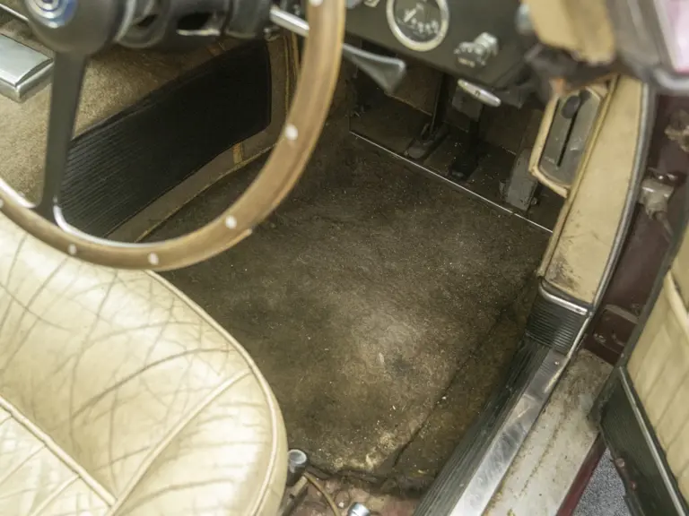 The Aston Martin eventually changed hands in 1975, by which time it had been repainted in Dubonnet. The odometer is believed to have been changed shortly after, and by the end of 1976 the car had been taken off the road and laid up in a garage; it remained untaxed for the following 35 years. A true time capsule, the Aston Martin’s slumber continued after being purchased by the consignor at auction in 2011, when it was shipped to Kuwait.