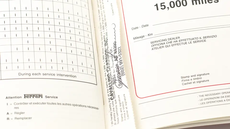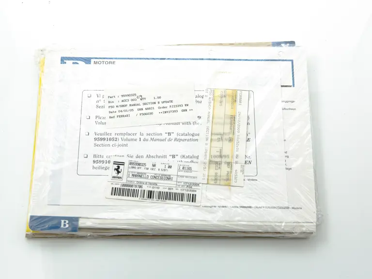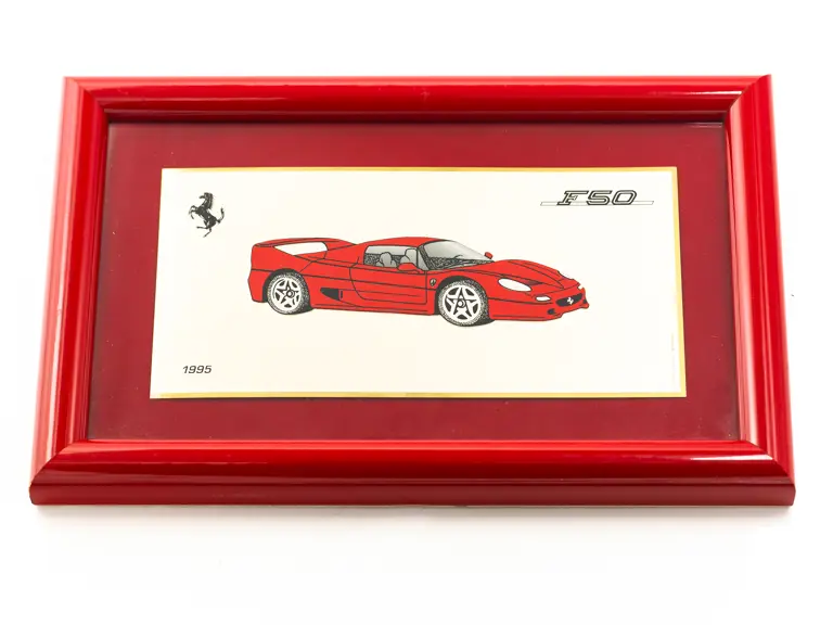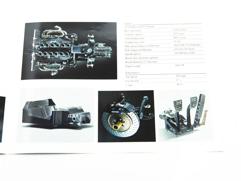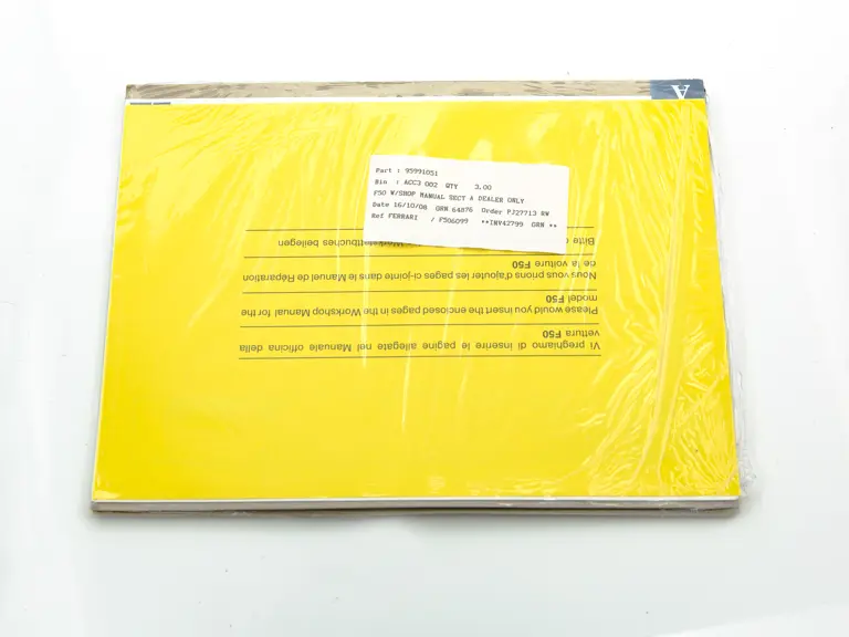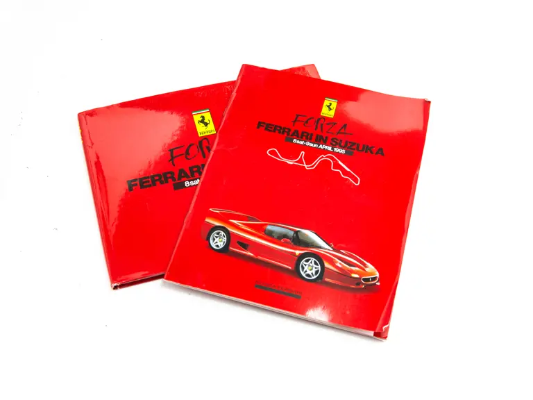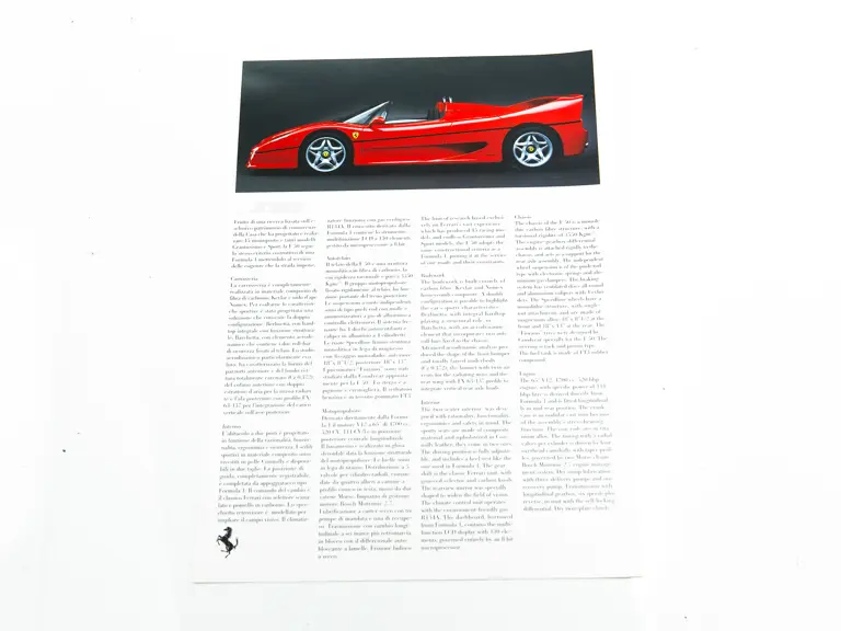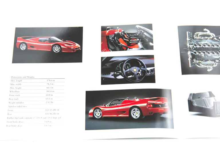 Contains a leather Schedoni folio with the Owner’s Manual, Service Book and Warranty Card for a Ferrari F50. It is accompanied by a host of desirable literature including technical sheets, posters, an F50 presentation brochure and photographs of a car being assembled at Maranello. The F50 in the photos is chassis number ZFFTA46B000106875 and the owner's books are made out to chassis number ZFFTG46A9S0104149.