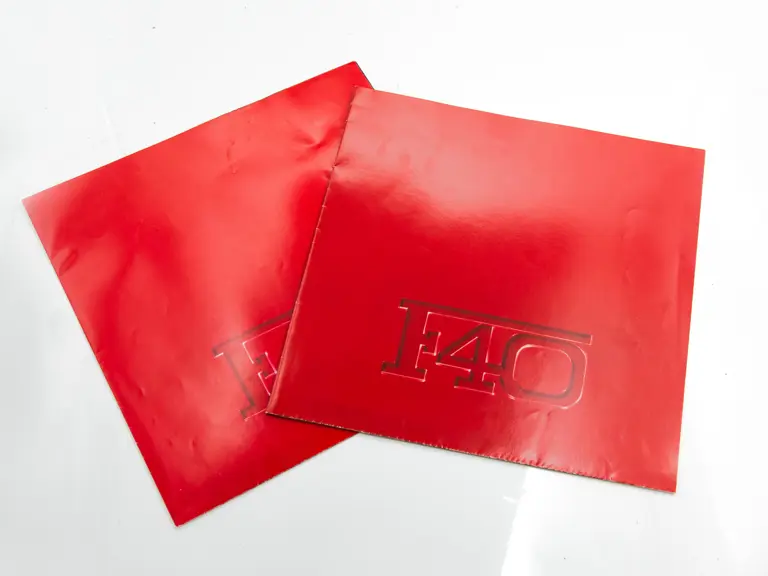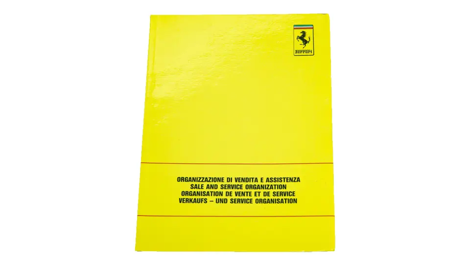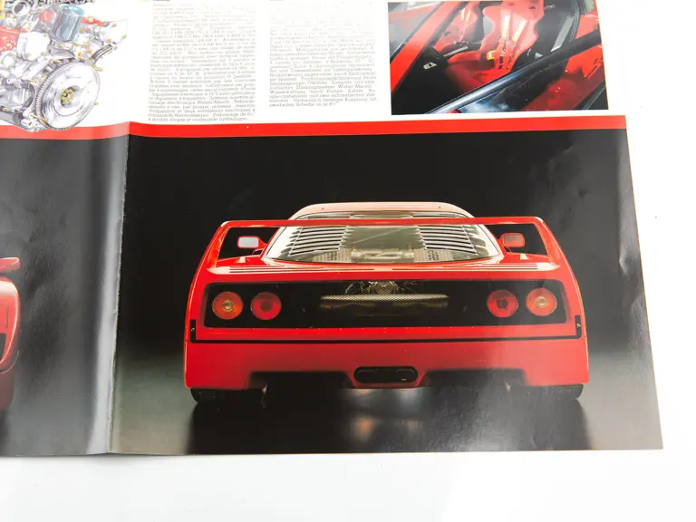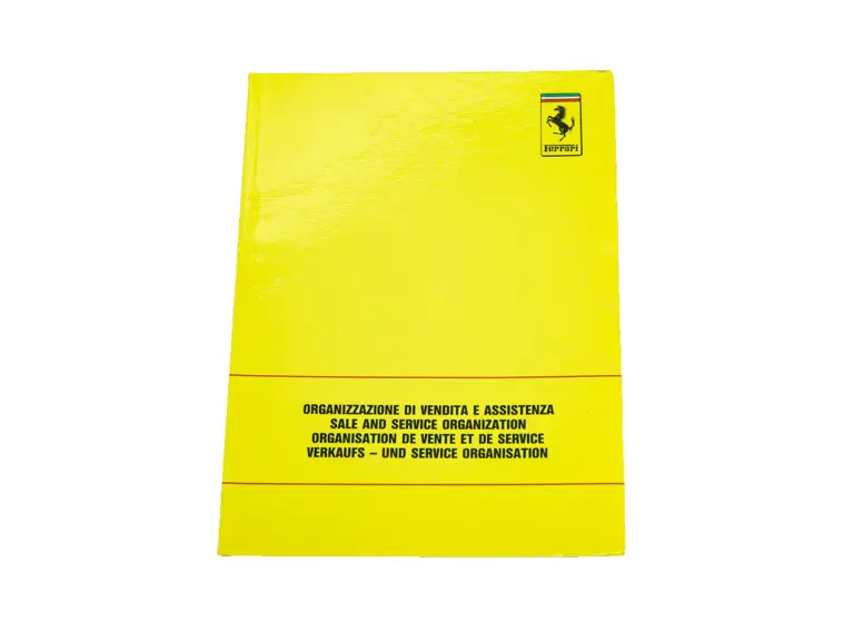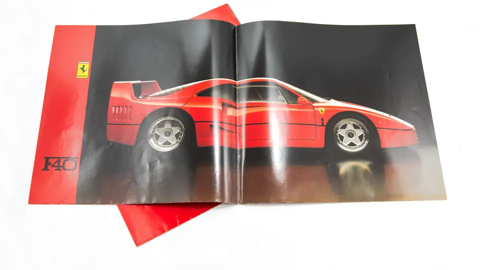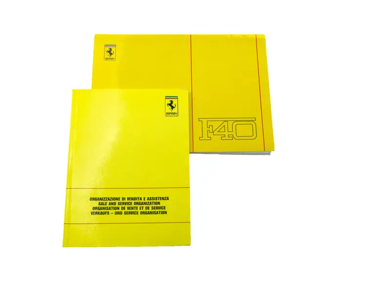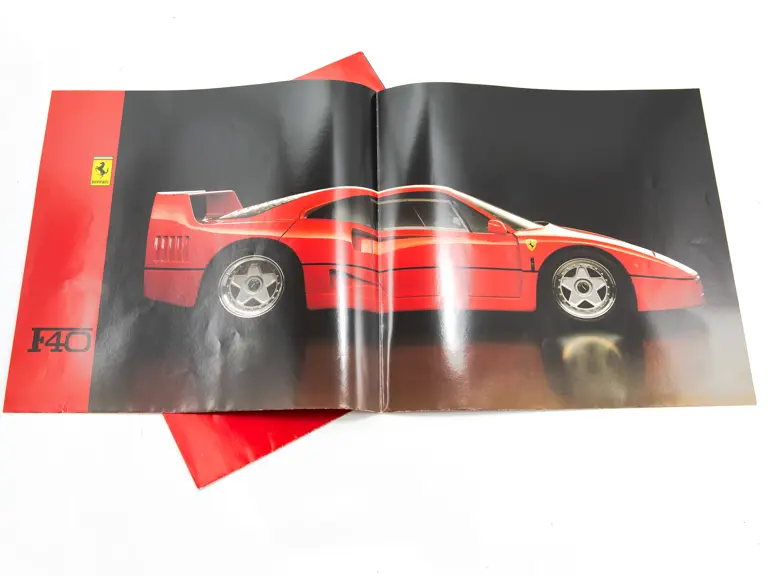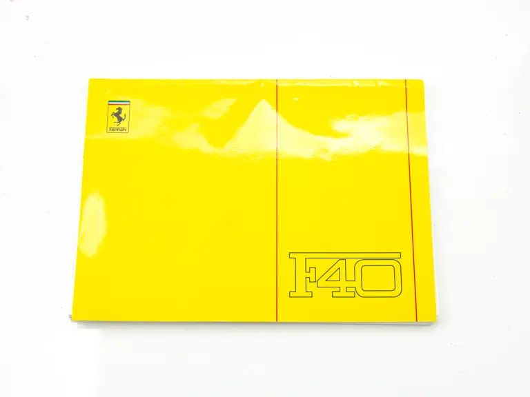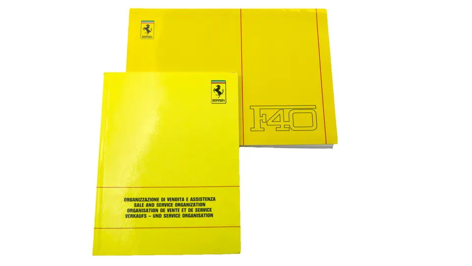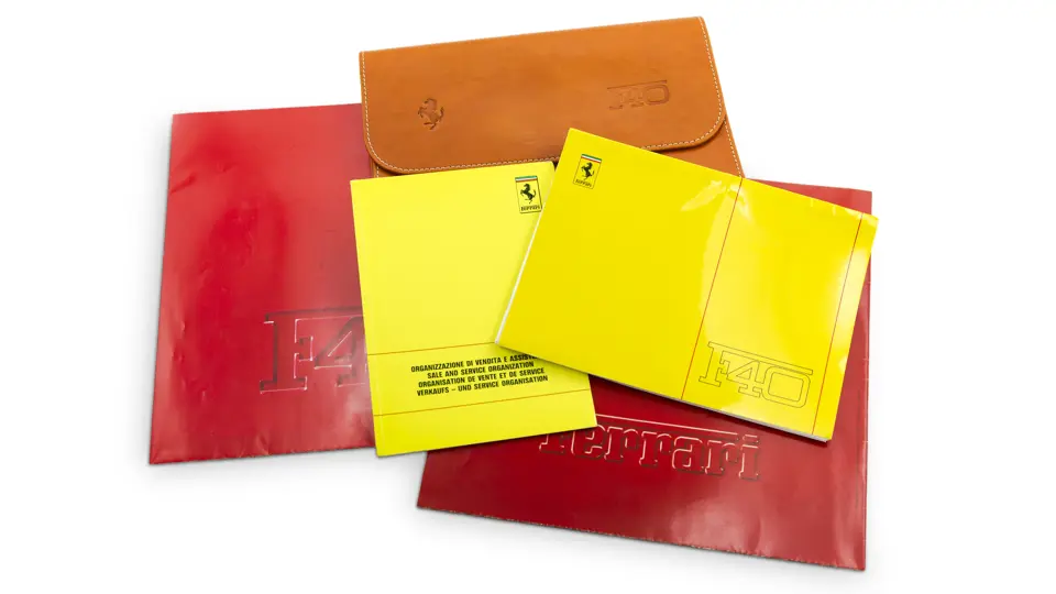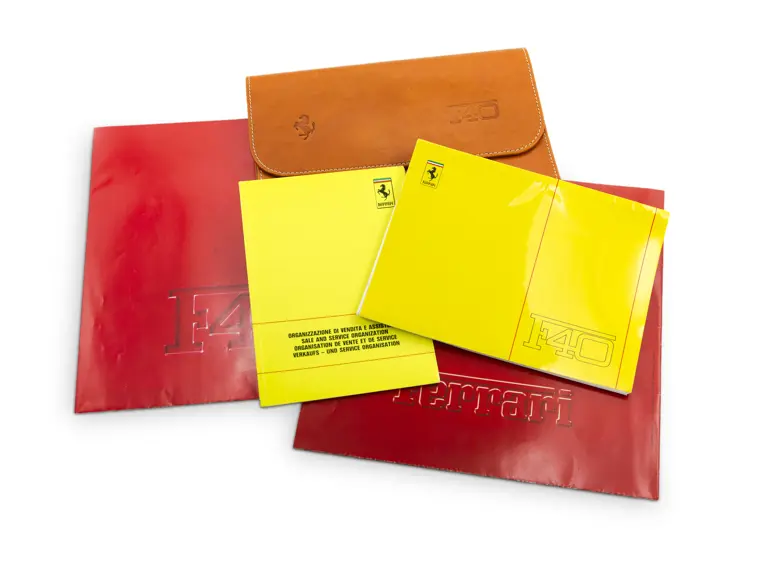 Contains a leather folio, F40 Owner’s Manual, the Ferrari Sales and Service list, and two F40 picture brochures.