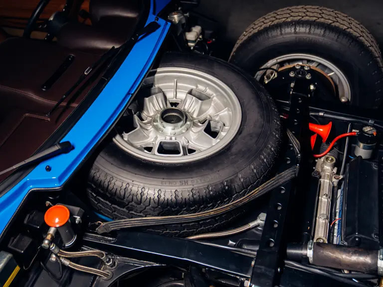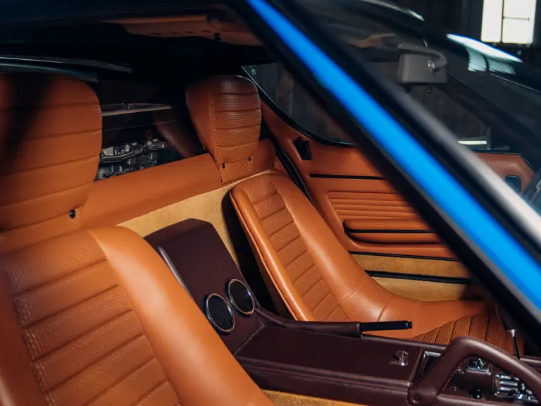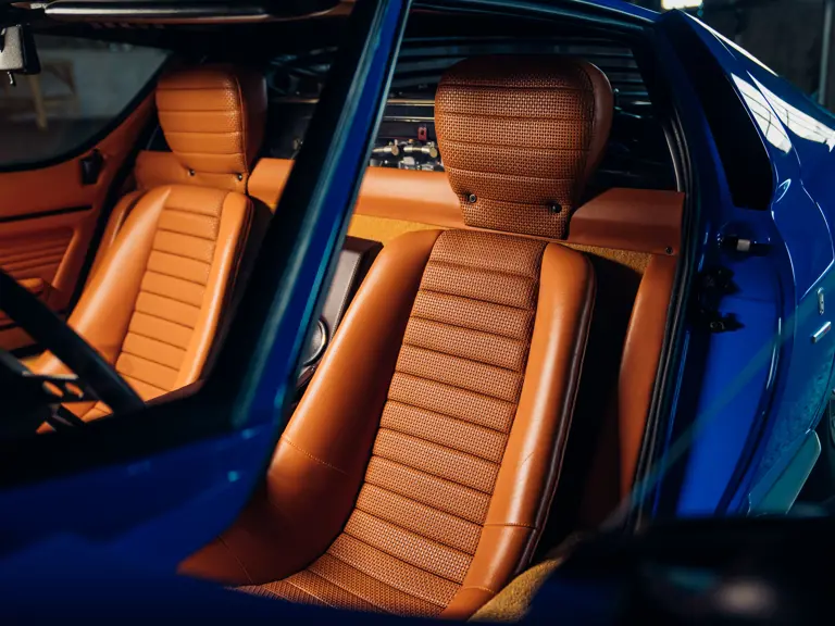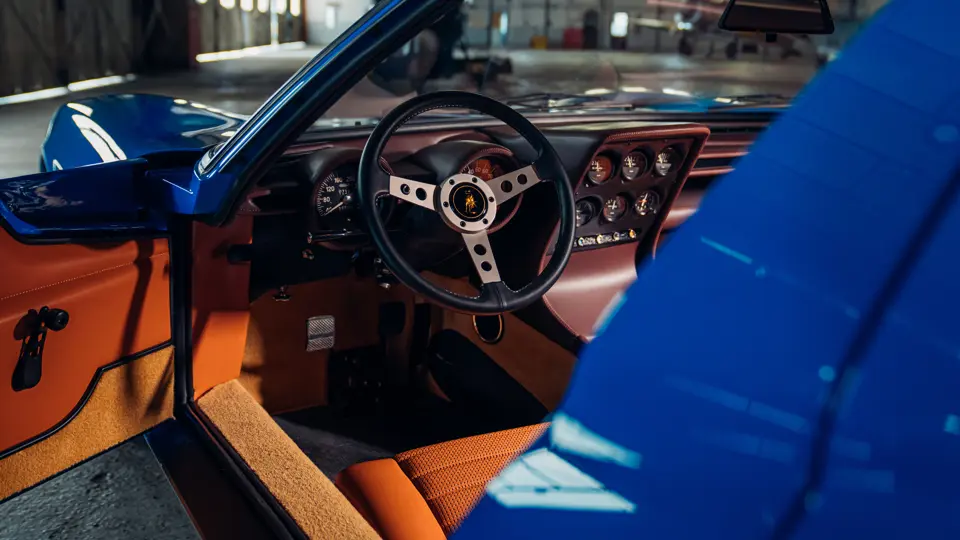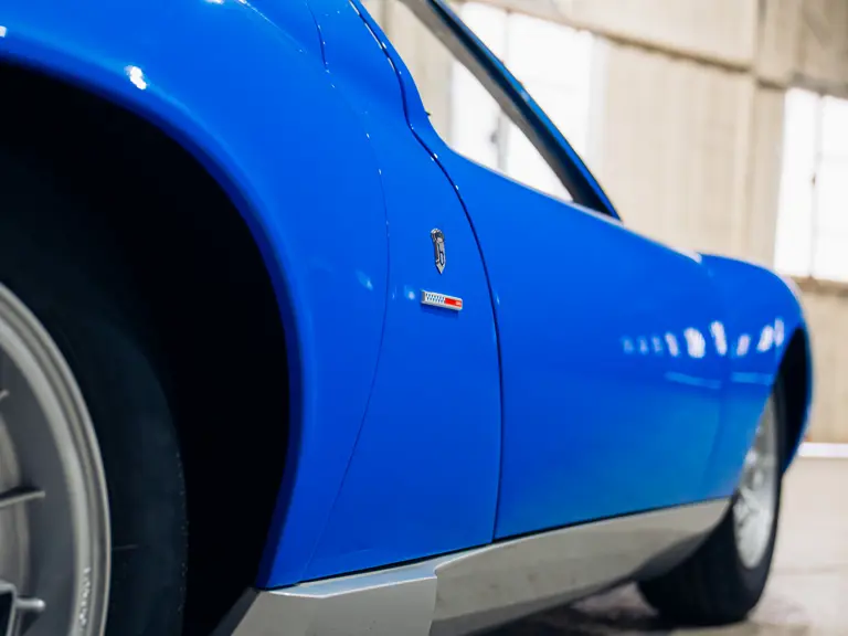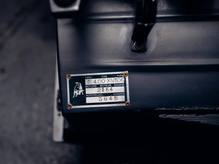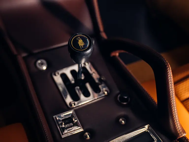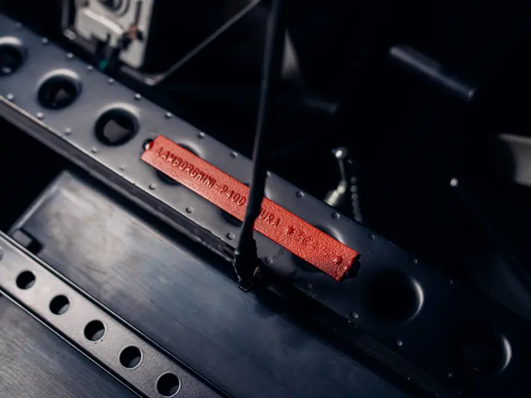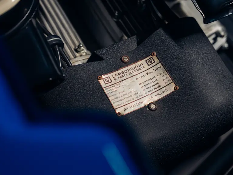 Delivered to the Italian Lamborghini Agent S.E.A. on 5 September 1968 and registered with the Roman targa “D29122”, chassis number 3645 had left the Sant’Agata Bolognese production line with its Bertone body coated in the fabulous shade of Bleu Miura over a Skay Senape interior. This was an extremely rare configuration, with factory records indicating just 37 P400s painted in this colour.