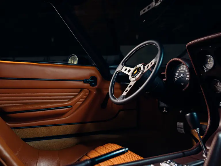 The Miura’s function was equally matched by its form, executed by a 22-year-old Marcello Gandini during his time at Carrozzeria Bertone. The Italian designer penned the now-famous design that was both deeply attractive and menacingly purposeful; headlamp surrounds that evoked eyelashes, doors that—when opened—conjured the image of a raging bull’s horns, and a wild interior unlike anything previously seen on a production car.