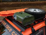 - Faithfully fitted with Oscar headlights, bull bars, mud flaps, skid plates, and a roof rack