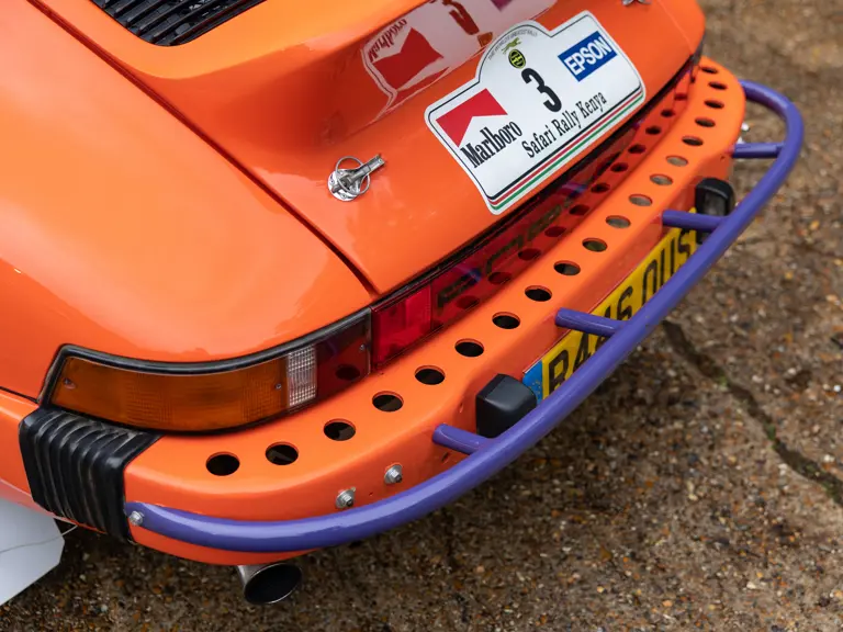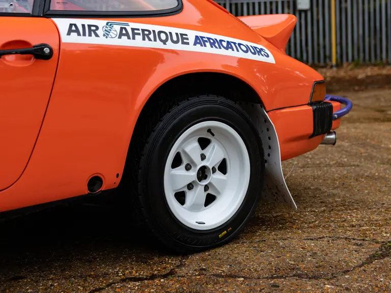 This iconic Porsche 911, which weighs just 960 kilograms fully loaded, is sure to provide an exhilarating driving experience. It has already been proven in the hands of several professional racing drivers and is fully ready for any road or terrain in the world. Like the original Safari cars, it is fitted with Oscar headlights, a roof rack made to measure and designed for raids or safaris equipped with a fuel drum, a spare wheel, plates to get out of mud or sand, shovel, and a pneumatic jack that works with the exhaust gasses. Please note, this 2025 catalogue description has been compiled with older photos. Interested parties are encouraged to inspect the car prior to bidding, and newer photos are available upon request. Please contact an RM Sotheby's Car Specialist for more.