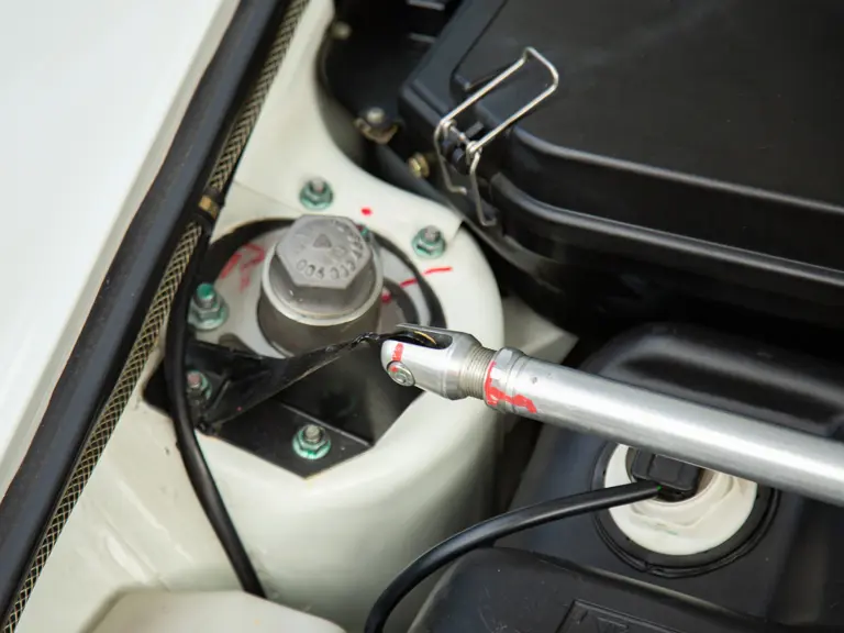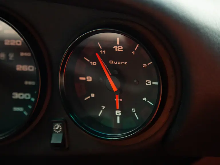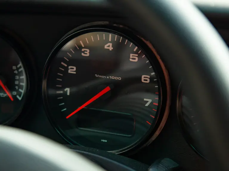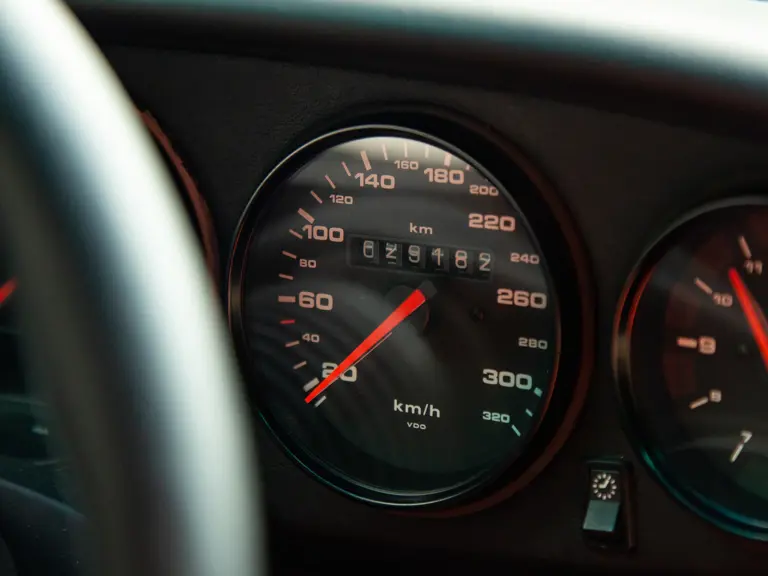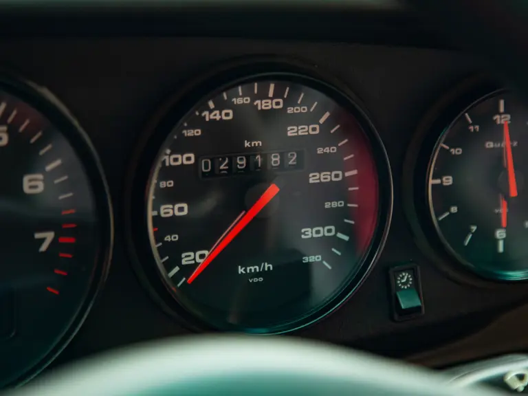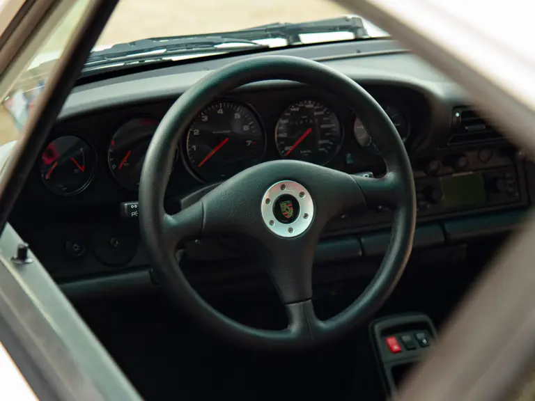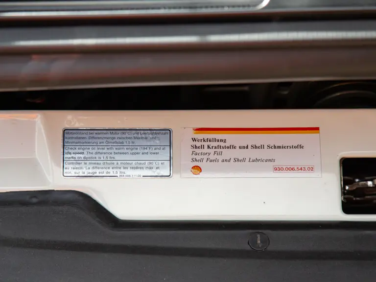 At the time of cataloguing, the odometer read 29,182 kilometres. The Porsche is accompanied by its folio containing books and manuals, which includes the service book and its corresponding history of workshop stamps. Included within the history file is a wealth of workshop invoices, expired registration documents, and test certificates from its time in France and the United Kingdom. Also included are a jack, tool roll, and tyre inflator.