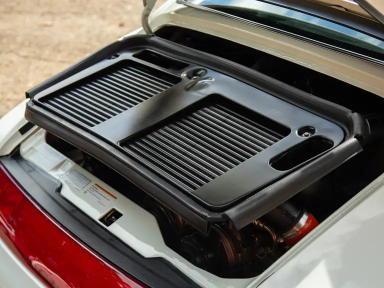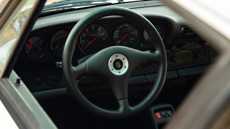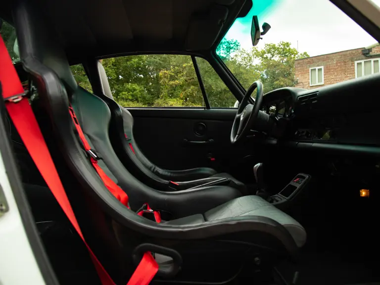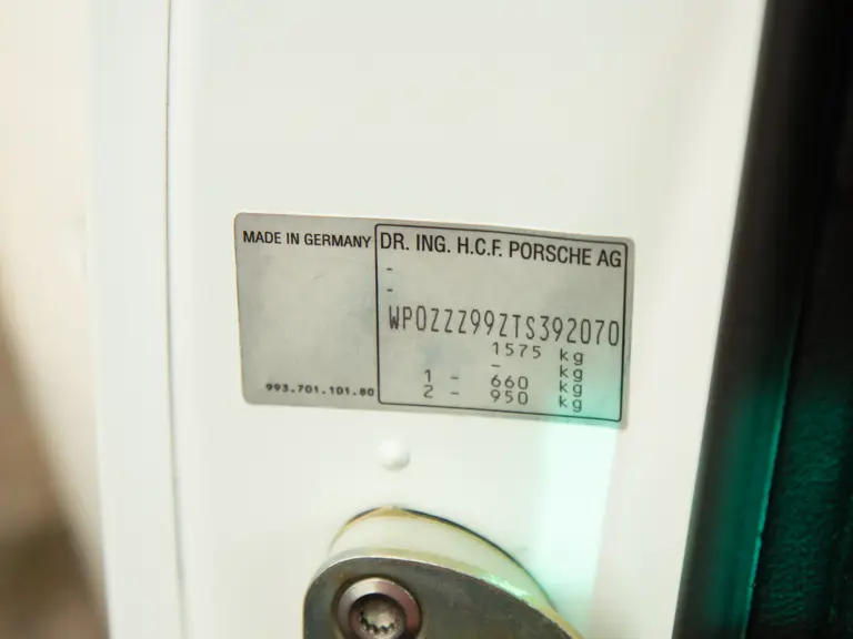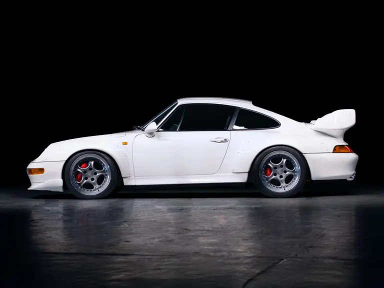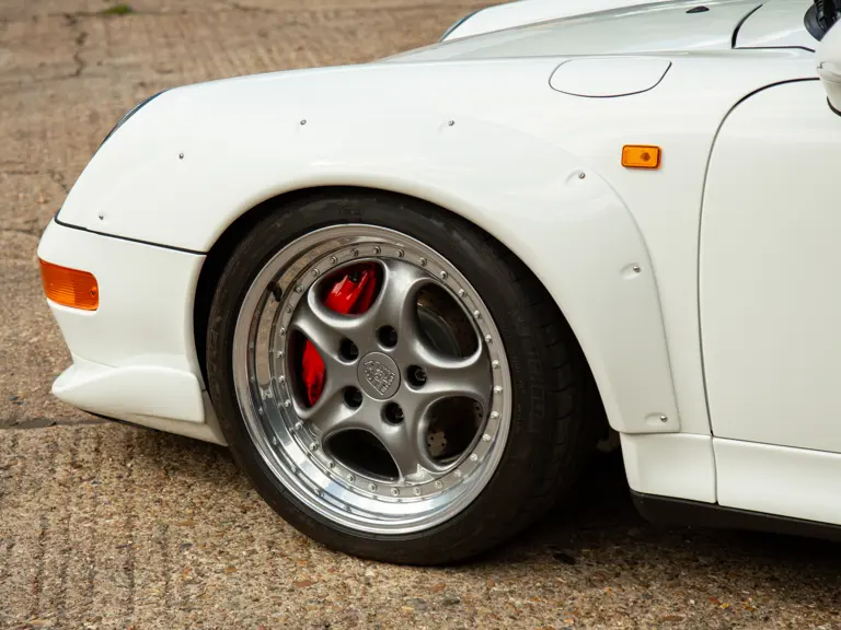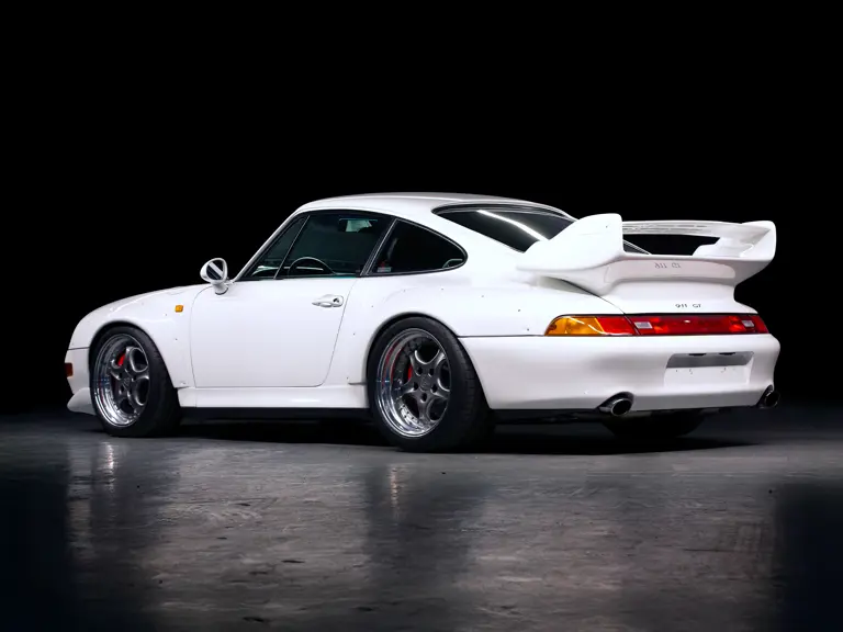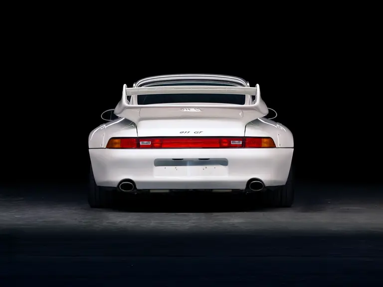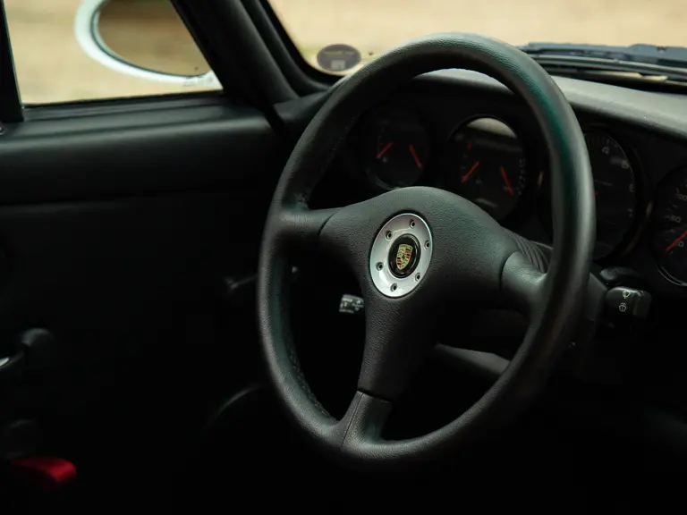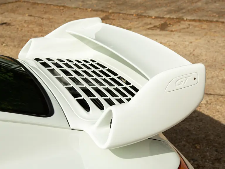 The example offered here is noted to have been completed by the Porsche’s Stuttgart plant on 31 May 1995, finished by the factory in Grand Prix White over a Black interior. The 911 GT2 was configured with a more powerful battery, sports seats for driver and passenger, a reduced radio set-up, air conditioning, differential lock, Momo leather steering wheel, airbags removed, and a 92-litre fuel tank. Among the most important option codes on the car’s build sheet was the selection of “09971”, which denotes that the 911 was ordered through Porsche’s Exclusive Manufaktur programme.