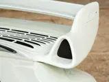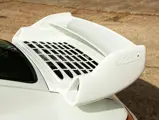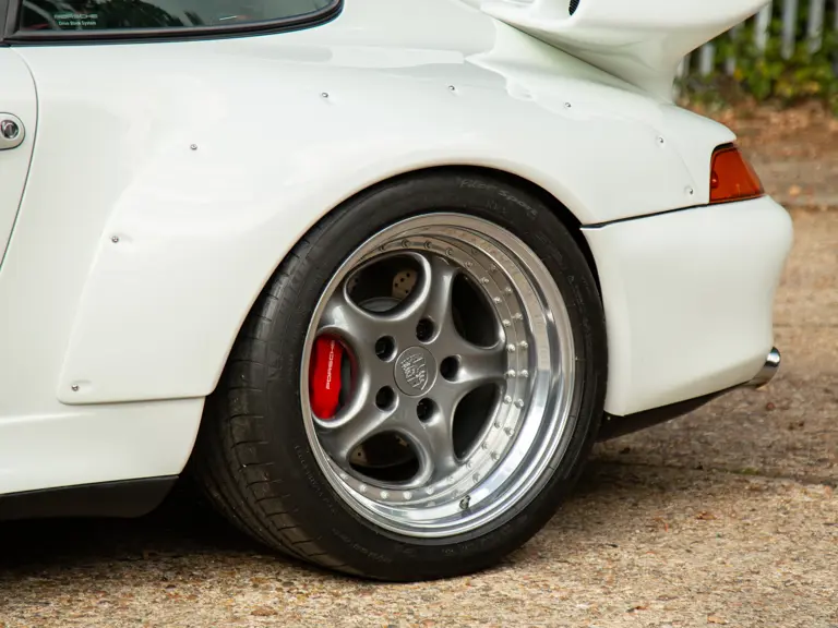 The GT2’s bodywork included aluminium doors and front boot lid, and a very aggressive aero package, with a front air splitter with up-turned winglets and a huge rear-deck-mounted wing incorporating air ducts that fed the intercoolers. Special 18-inch diameter multi-piece “Speedline for Porsche” alloy wheels with aluminium outer rims and magnesium centres filled the bolt-on fibreglass wheel arches.