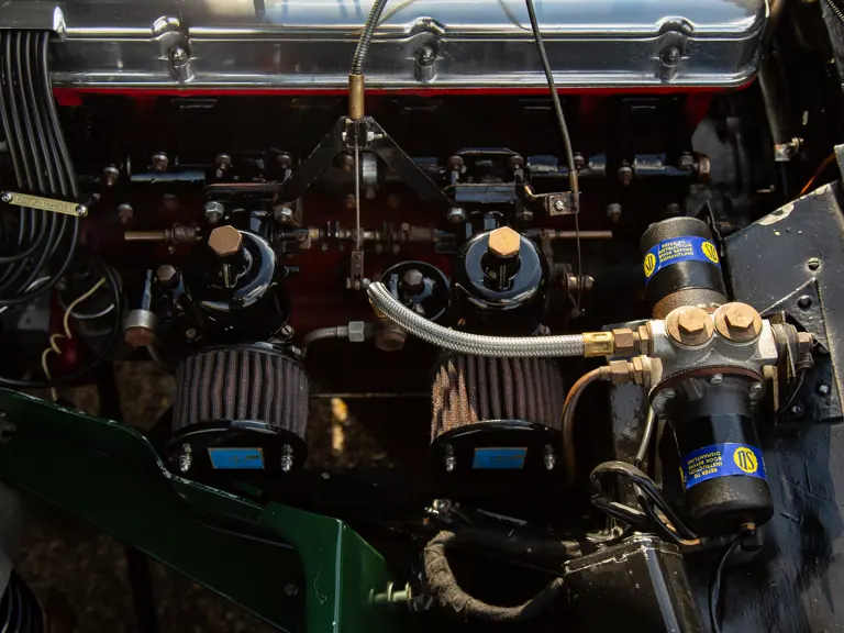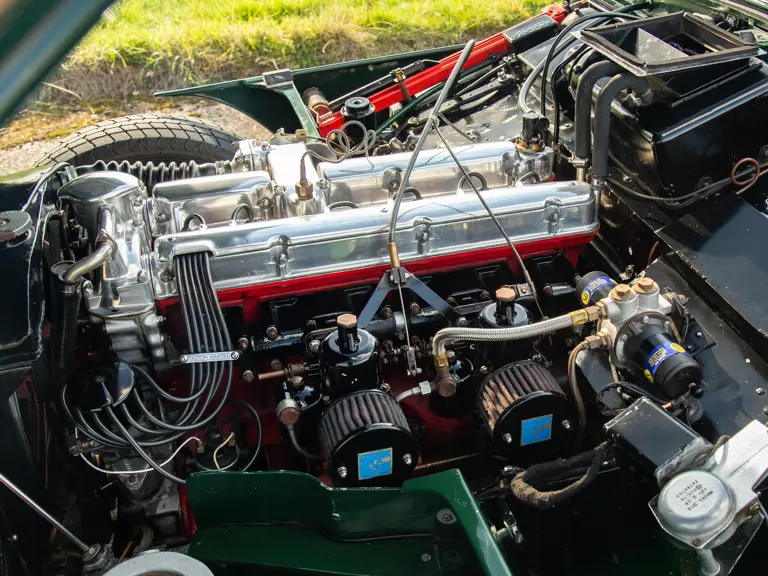 This Mk III was sold new through dealer A Bassett on 28 May 1958 to well-known Welsh Bugatti racer A H L (Lindsay) Eccles, younger brother of racing driver Roy Eccles. With wealth derived from the steel industry, Eccles owned and raced various Bugattis quite successfully. This included races at Brooklands and Donnington Park—securing numerous class wins and podium finishes at British Automotive Racing Club events prior to World War II, achieved in his racing colours of black and green. Along with Earl Howe, the Hon Brian Lewis and Charlie Martin, Eccles was one of four British racers invited to acquire the Type 59 Bugatti Works cars of 1934, with his example understood to now be part of the famed Ralph Lauren collection.