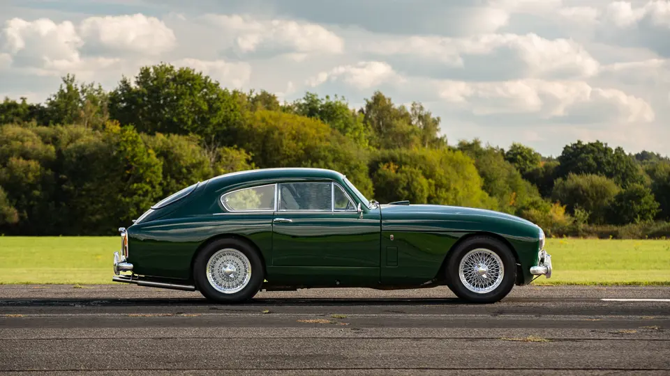 Introduced at the 1957 Geneva Salon, the DB2/4 Mk III (or Mk III) was the final and most highly developed iteration of the DB2 series. Its characteristic grille derived from the DB3S sports racing car and redesigned dashboard binnacle became trademark design elements of the DB line. The Willie Watson/WO Bentley-designed twin cam straight six developed 162 brake horsepower in standard DBA form, and Girling front disc brakes were fitted after the first 100 cars. With 551 examples produced, Road & Track declared it “a car for connoisseurs” and famously, of course, Britain’s favourite spy takes to a Mk III in Ian Fleming’s Goldfinger novel of 1959, James Bond under cover as a “well-to-do, rather adventurous young man with a taste for the good, fast things of life”.