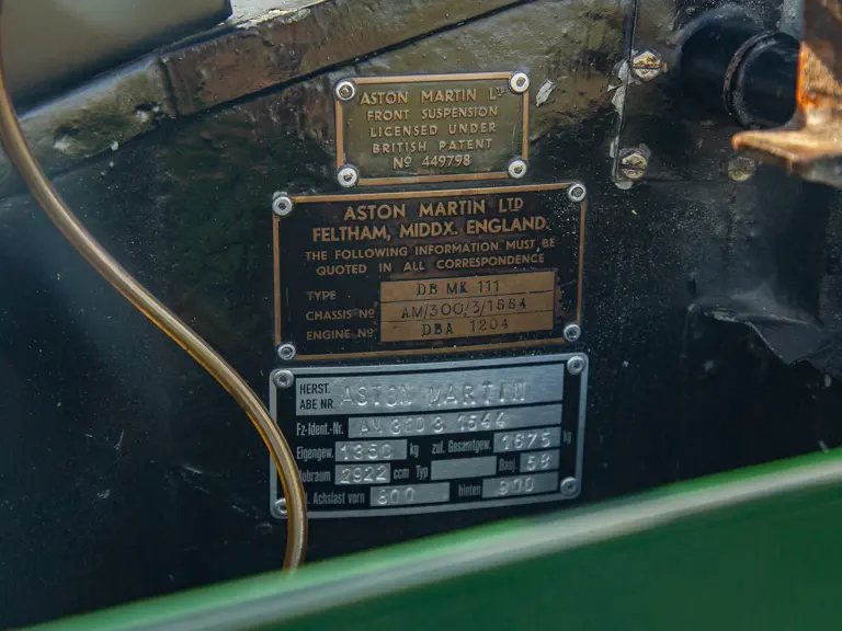 Eccles would be just the first of several devout driving enthusiasts to own this remarkable Mk III, initially registered “SCY 111” in Swansea, Wales. It came finished from the factory in Dark Carriage Green with Grey Connolly hides, with the essential and optional overdrive, according to a copy of its original build sheet (available to view on file). Documentation indicates subsequent owners included D R Holland (an Aston Martin Owners Club secretary), A P Ashton, and Roy Martin of Birmingham in 1974, a police driving instructor who raced the Mk III successfully in club events until 1979. In 1981, Dutch Aston Martin enthusiast Lodewijk Heydenrijk acquired the Mk III, and completed a six-year, bare-chassis restoration, paying considerable attention to detail and notably retaining the original interior. Heydenrijk enjoyed a long ownership up to 2010, showing the car at UK Aston Martin Owners Club events, using it for golf outings, for family events, and touring Europe.