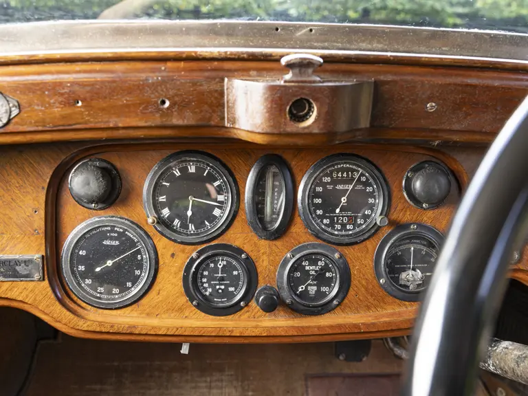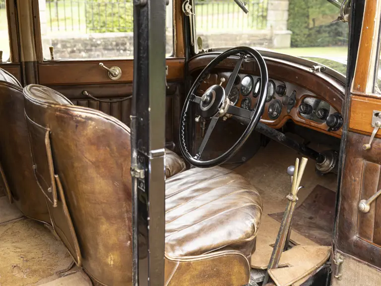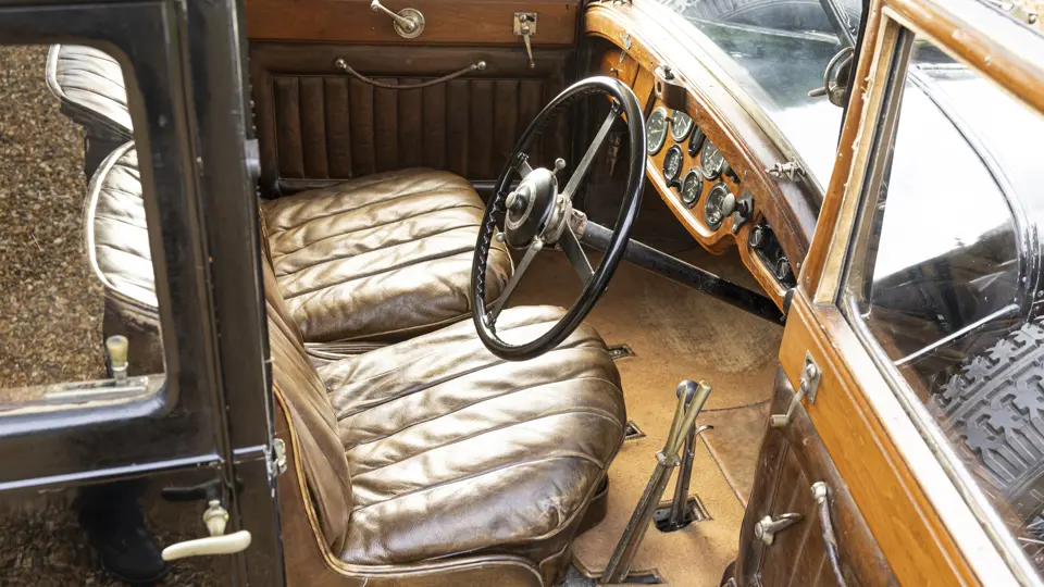 Aside from a few minor components, such as the coil, Dr Hay notes that all is ‘exactly correct for a 1930 Model Speed Six…the chassis generally is extraordinarily original,’ retaining an impressive quantity of original and correct finishes. The car is still wearing what is believed to be its original black paintwork of 1935, with a later roof covering, and is summed up in the report as ‘a fascinating piece of archaeology,’ retaining its original woodwork and trim, down to the woven assist handles and even the cigar lighter. Only the headliner required replacement. A full engine rebuild was undertaken by marque specialist Ewen Getley of Kingsbury Racing, invoices for which are on file. The consignor also recently commissioned a master upholsterer to create new front seats for driving use, so that the originals can be conserved – a very thoughtful and useful touch.