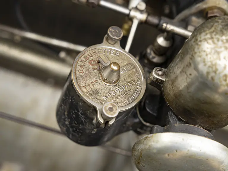 Notes of Bentley historian Dr Clare Hay, whose typically highly detailed and fascinating report is included within the history file, note that the car retains its original chassis, stamped on the front cross-member; numbered bonnet side panels; engine sump; steering box; C-type gear box; battery box; back axle banjo and differential casing; and instruments. Even the pair of SU HVG5s are a matched set and thus likely original to the car, and the Freestone & Webb body number is stamped onto one of the rear floorboards.