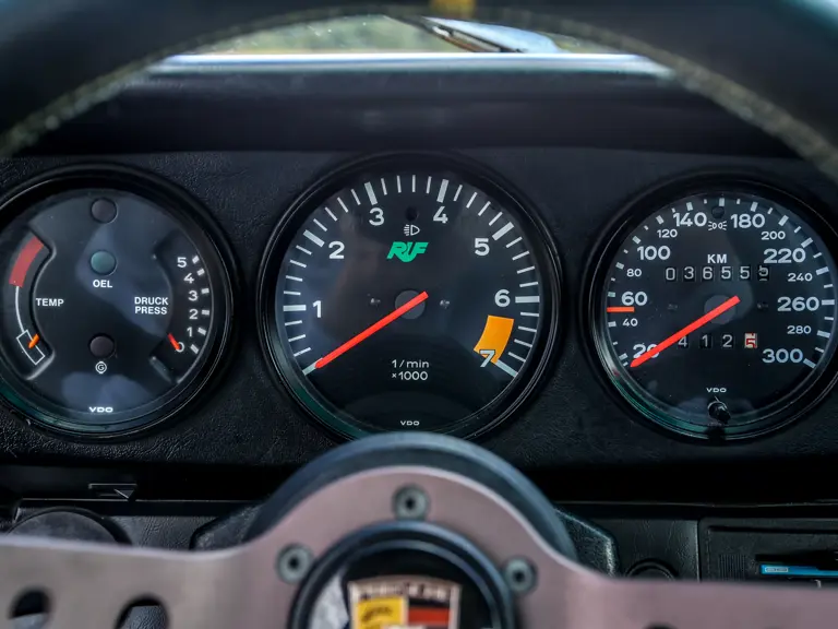 Since its conversion, the car has been meticulously maintained by RUF and other renowned Porsche specialists, remaining in Germany under careful ownership until May 2022, when it was acquired by the consignor, a United States-based enthusiast. Under their stewardship, in April 2023, the car was entrusted to Rindt Vehicle Design Ltd of Berkshire for a comprehensive service, which included removing the engine for inspection, cleaning and re-torquing, a complete gearbox and differential rebuild, and the retrimming of both front and rear seats. The odometer shows 35,555 kilometres on its at the time cataloguing, though this is believed to have been reset when the car was converted. This RUF 3.4 CR is offered with a significant history file containing its German registration papers, original Ruf conversion invoice, service history, and US bill of sale.