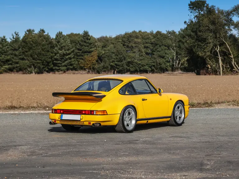 Commissioned by a German enthusiast in 2014, the conversion was carried out by RUF at the renowned Pfaffenhausen facility, with a multi-page invoice on file detailing the extensive process. The transformation had the car equipped with Yellow Bird bodywork, RUF wheels, a RUF five-speed gearbox, and a naturally aspirated 3.4-litre flat six-cylinder engine mated to a limited-slip differential. Inside, the cabin features colour-matched Porsche 968 Club Sport seats, retrimmed in bespoke jacquard fabric with CR monogram detailing. The result is a finely balanced, analogue driving experience, presented with all the visual and mechanical hallmarks of RUF’s celebrated craftsmanship.