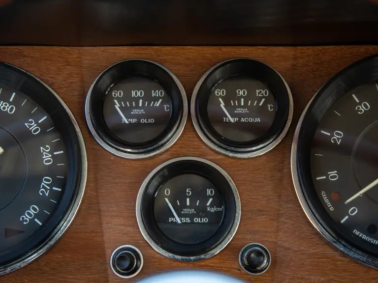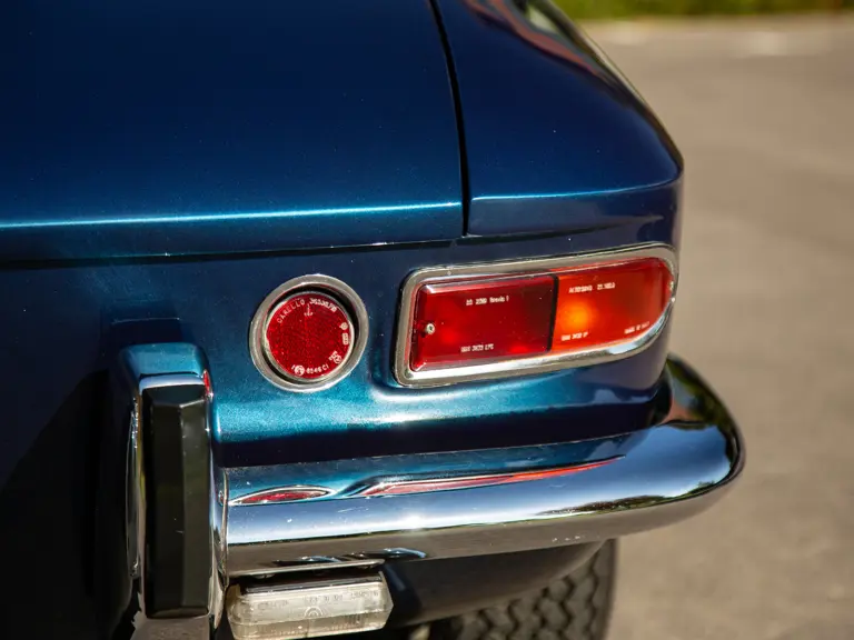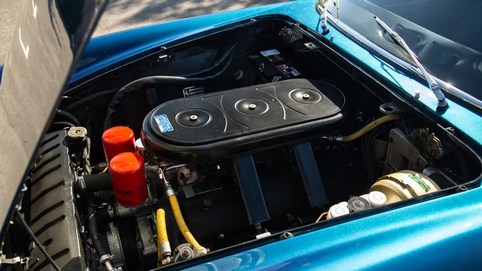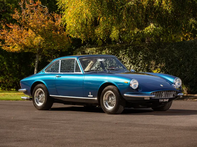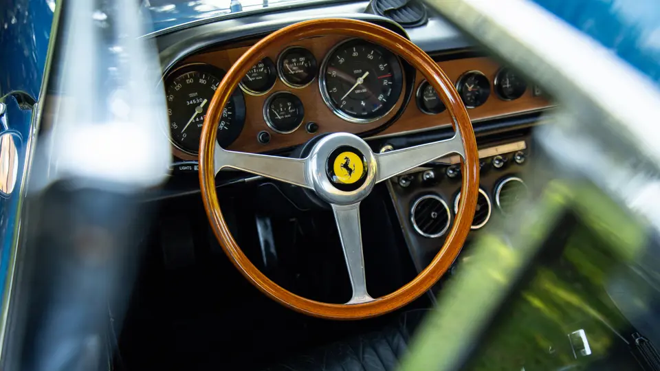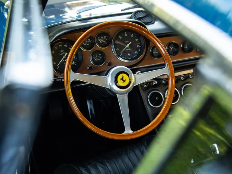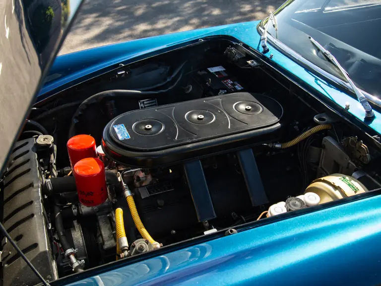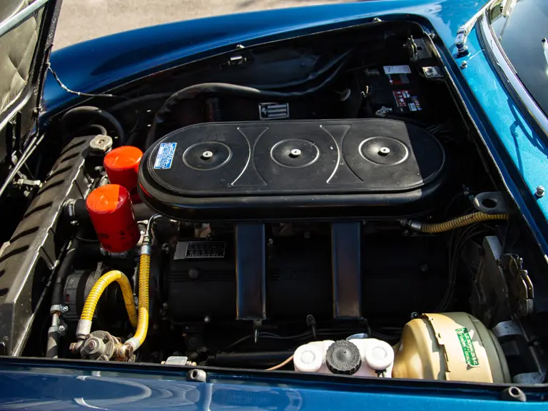 After being sold at auction in Monaco in May 2014, the Ferrari was acquired in 2015 by a collector in the UK. As demonstrated by invoices on file, he entrusted the 365 GTC to MD Allen Engineering of Norfolk for mechanical work over the next four years. During this time, the brake lines and fuel lines were replaced, minor body and chassis issues were corrected, the engine was serviced and the carburettors adjusted, wiring repairs undertaken, and the brakes were cleaned and updated with new pads. It is believed that the current paint finish in the stunning shade of Blu Sera was also conducted during this keeper’s care.