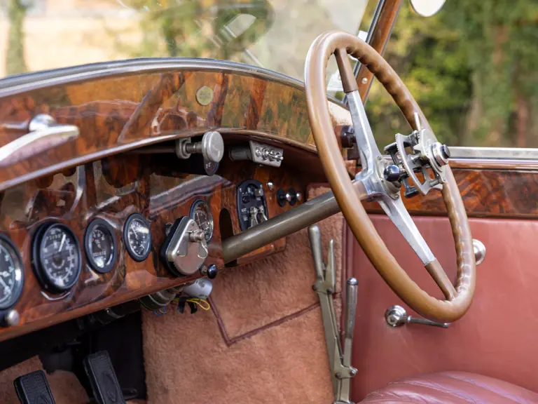 In more recent ownership, the Phantom I was sorted mechanically and enjoyed by its caretakers in several touring and rally events, including a journey from Monte Carlo to Switzerland over the Alps, while still occasionally making appearances at various European concours. The Rolls-Royce retains its matching-numbers engine. It is still in lovely overall condition, and as a uniquely sporting example of its type would be most desirable for any Rolls-Royce collector’s stable.