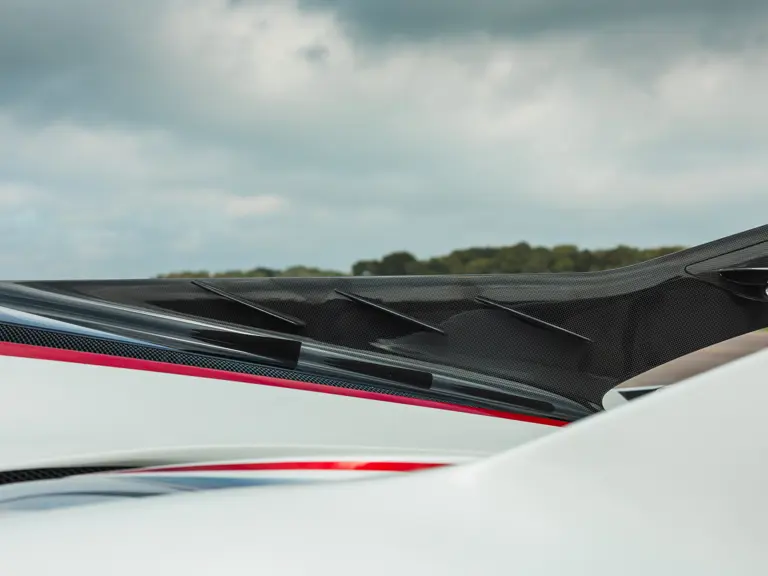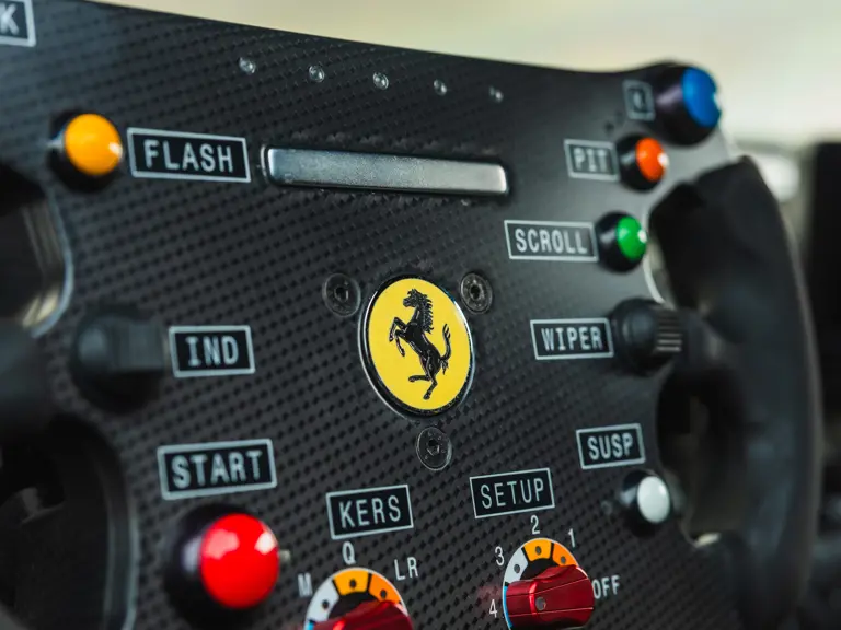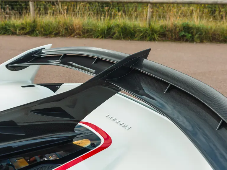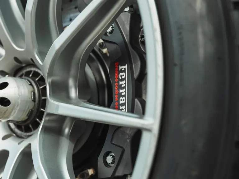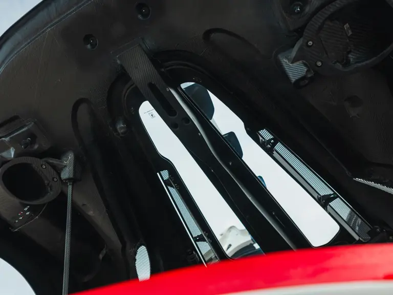 At the time of a Ferrari technical report on file, the engine had accrued only 213 kilometres since the upgrade work, and the gearbox had accrued only 96 kilometres. At the time of the report, the front brake discs evidenced only 6 per cent wear, while the rear discs showed 0 per cent wear. Although the total odometer reading at the time of cataloguing was 5,722 kilometres, the car has accrued only 213 kilometres since the factory rebuild. These figures suggest that the FXX-K Evo has many miles of track enjoyment available for the future keeper, and the beautiful car was appropriately displayed in September 2025 at the Hampton Court Concours d’Elegance.