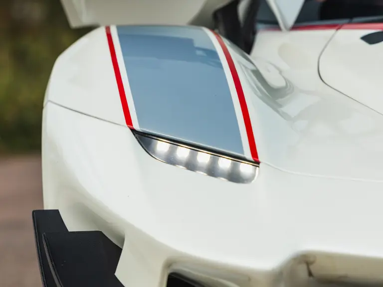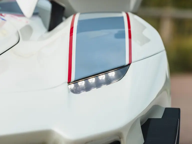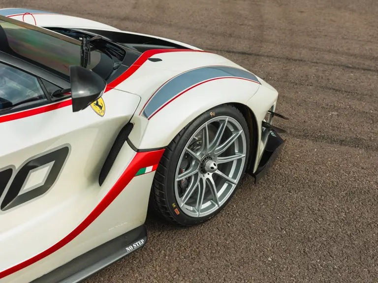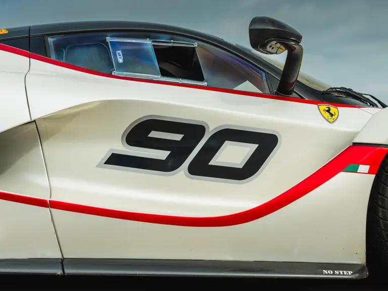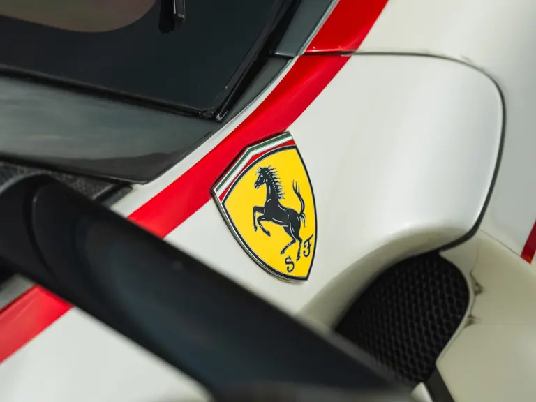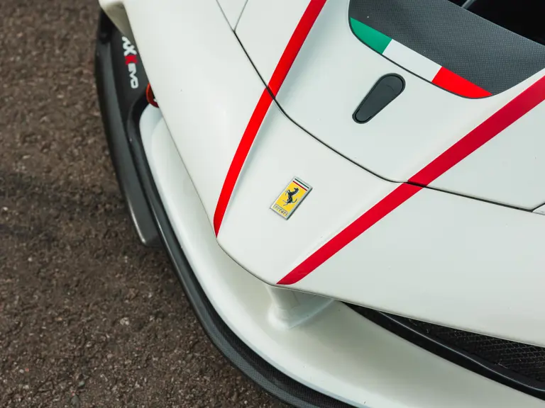 Claiming a life of modest racing use through two ownerships, as well as a factory upgrade to Evoluzione specifications, this striking FXX-K Evo is a very desirable example. Delivered new in 2015, chassis number 212002 is presented in Bianco Italia paint with Rosso Fuoco and Argento accents, and benefits from the fastidious care of just two keepers during its lifetime. Originally designated as Programme racing car #61, the FXX K was enjoyed in Corse Clienti events during the 2016 and 2017 seasons before being upgraded to Evoluzione specifications and renumbered as car #90.