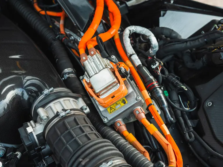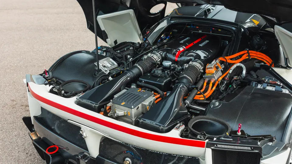 Like the LaFerrari, the FXX K was propelled by a Formula 1-derived Hy-Kers hybrid powerplant centred on a further version of the Tipo F140 V-12 engine, the F140 FF, now displacing 6.3 litres. The mill was upgraded with new camshafts with mechanical (rather than hydraulic) lifters, specially polished intake manifolds, and a new exhaust system without mufflers, contributing to an increase to 848 horsepower.