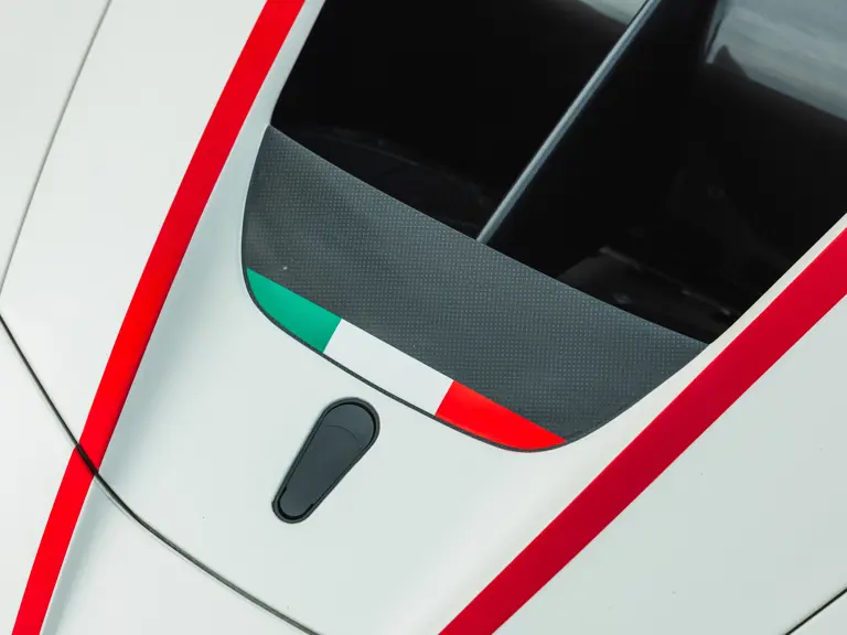 - Finished in Bianco Italia paint with Rosso Fuoco and Argento accents over a Nero Alcantara interior
