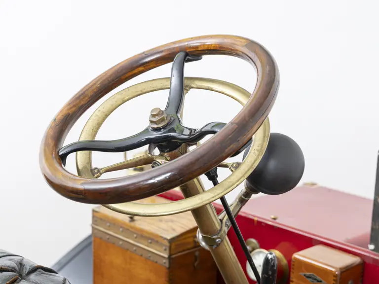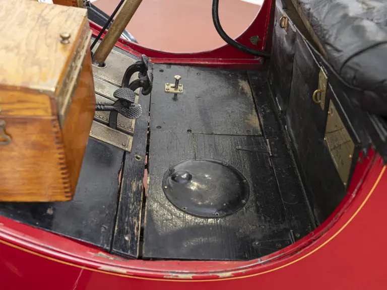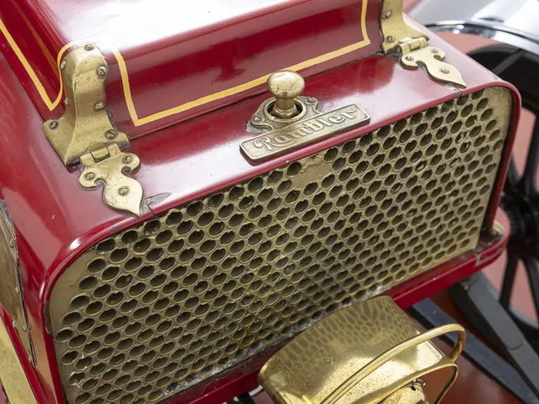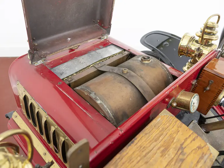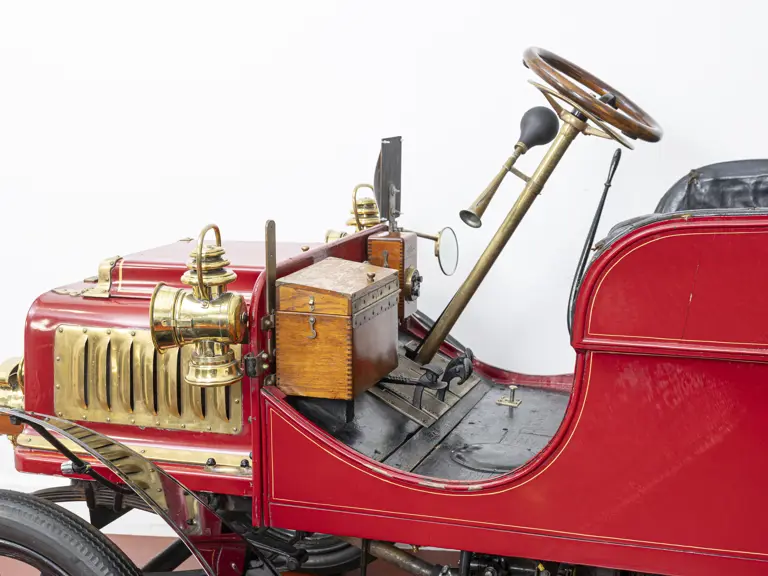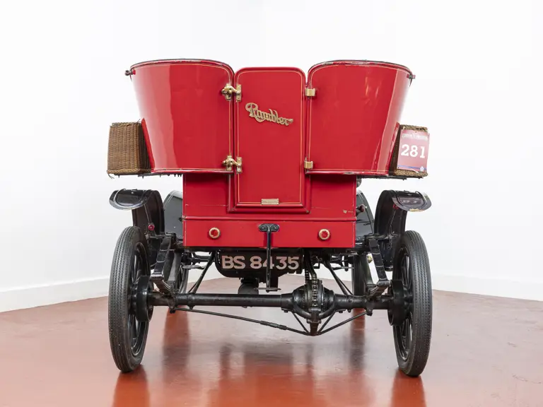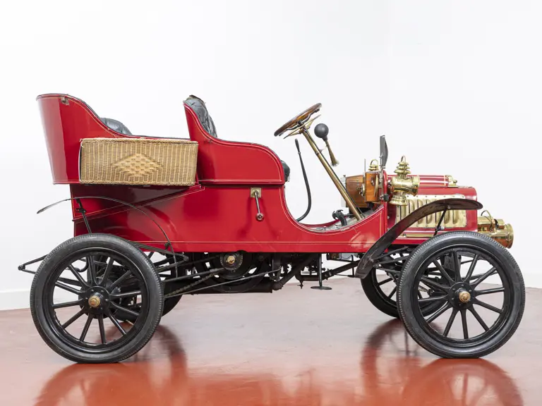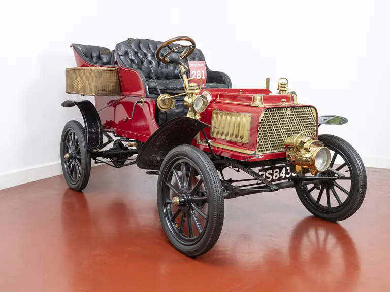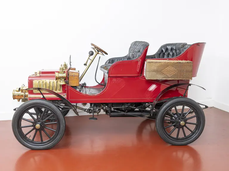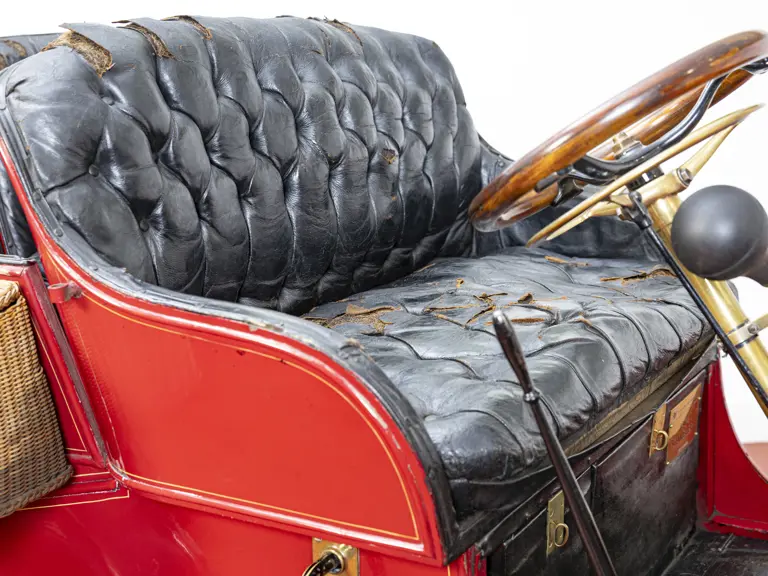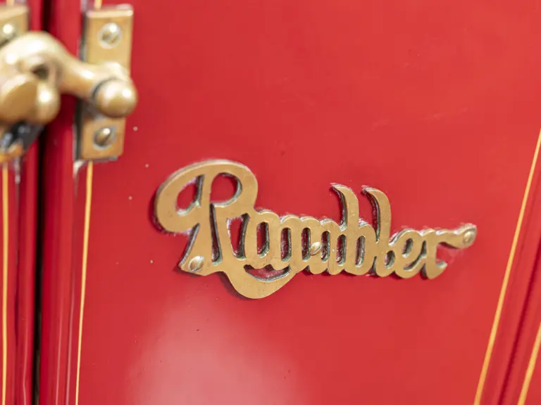 The Rambler offered here is a 1904 Model H, powered by a 7-horsepower single-cylinder engine with right-hand drive wheeled steering and throttle control, and bearing handsome rear-entrance “detachable tonneau” coachwork, finished in rich scarlet with its original black leather upholstery, and accessorised with Badger Brass Solar headlamp and side lamps. Acquired in 2005 by previous owner Robert Hadfield from John A Lavallee of Cambridge, Vermont, its caretaker since 1973, it was subsequently exported to the United Kingdom and, having been properly VCC-dated, has since completed the London to Brighton Veteran Car Run in 2007, 2010, 2017, 2018, and 2019. It is accompanied by a history file that includes dating paperwork, other correspondence, and a copy of the V5C from prior ownership.