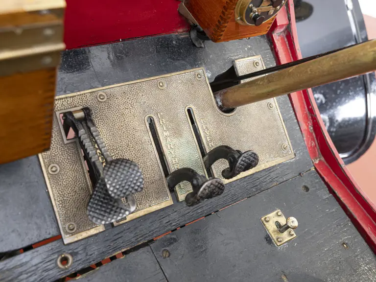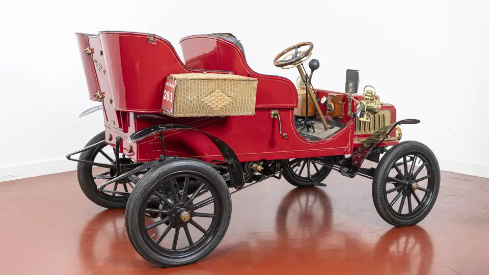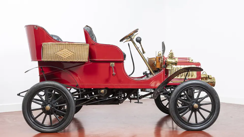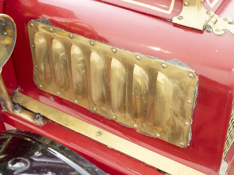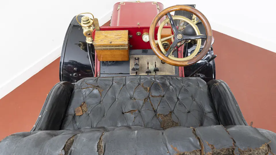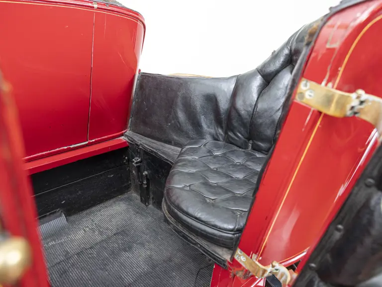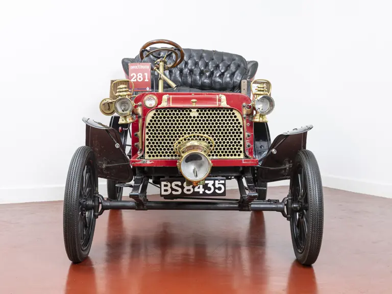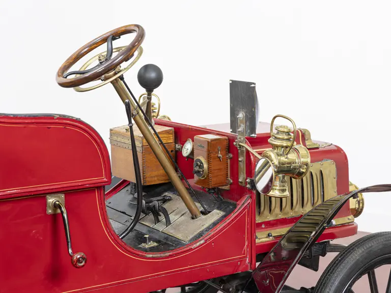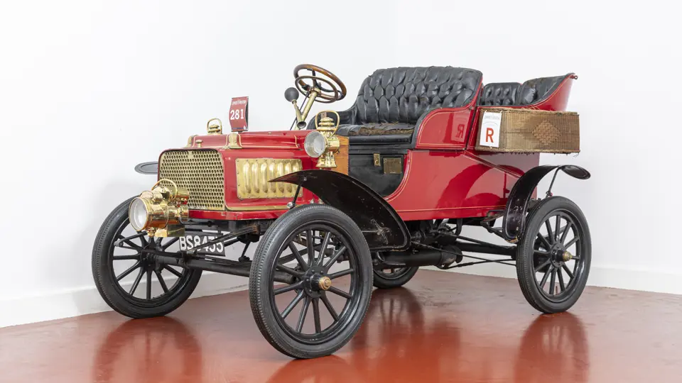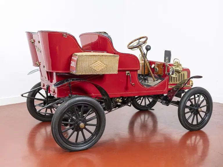 The Rambler offered here is a 1904 Model H, powered by a 7-horsepower single-cylinder engine with right-hand drive wheeled steering and throttle control, and bearing handsome rear-entrance “detachable tonneau” coachwork, finished in rich scarlet with its original black leather upholstery, and accessorised with Badger Brass Solar headlamp and side lamps. Acquired in 2005 by previous owner Robert Hadfield from John A Lavallee of Cambridge, Vermont, its caretaker since 1973, it was subsequently exported to the United Kingdom and, having been properly VCC-dated, has since completed the London to Brighton Veteran Car Run in 2007, 2010, 2017, 2018, and 2019. It is accompanied by a history file that includes dating paperwork, other correspondence, and a copy of the V5C from prior ownership.