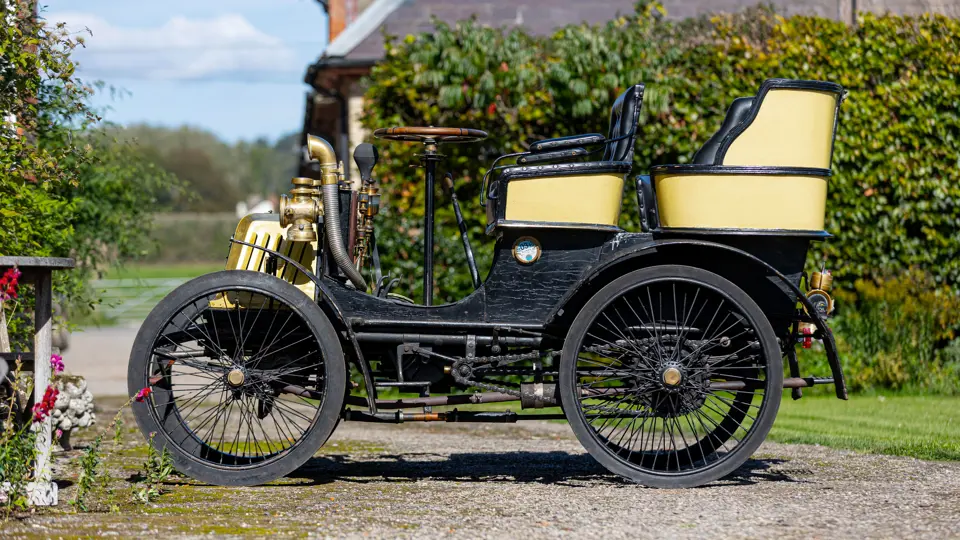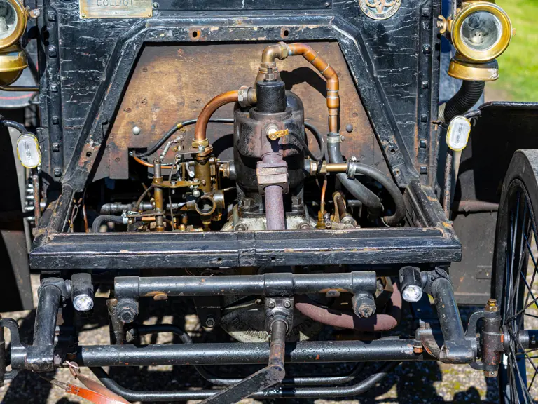 That offered here is the only known surviving Colliot, with the water-cooled De Dion-Bouton powerplant and a four-speed with reverse delivering power by chain drive to each rear wheel with solid rubber tyres. It has a rather rich history with the Veteran Car Club, having been owned during the 1940s by Major James Gardiner, a noted enthusiast of the era post-war era who served for many years as chairman of the VCC’s North-West Section. He participated with his automobiles in numerous VCC events, and indeed eventually bequeathed one of his stable, a 10 HP Wolseley, to the club in his will. It appears that for much of its early history the identity of this vehicle was unknown, with it regularly being described as simply “a De Dion-engined car”, before it was finally identified as a Colliot and appropriated dated as a 1901 model in December 1997, per the VCC dating paperwork on file.