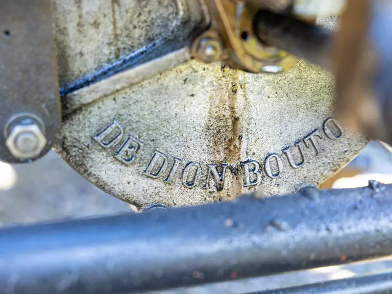 - Single-cylinder De Dion-Bouton engine and dual chain drive on tubular frame