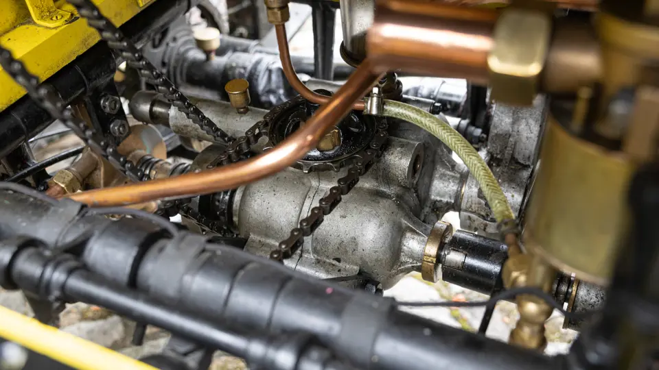 Until 1899, the French firm De Dion, Bouton et Compagnie produced mostly motorised tricycles, some of which were made into four-wheelers with a two-wheel forecar arrangement. Later that year, the Voiturette was introduced and was a true four-wheel car with a tubular “waisted” chassis frame. The engine, a single-cylinder, 3½-horsepower, 402-cc unit, was located at the rear and drove through a two-speed constant-mesh transmission, with gear changes effected with clutches.
