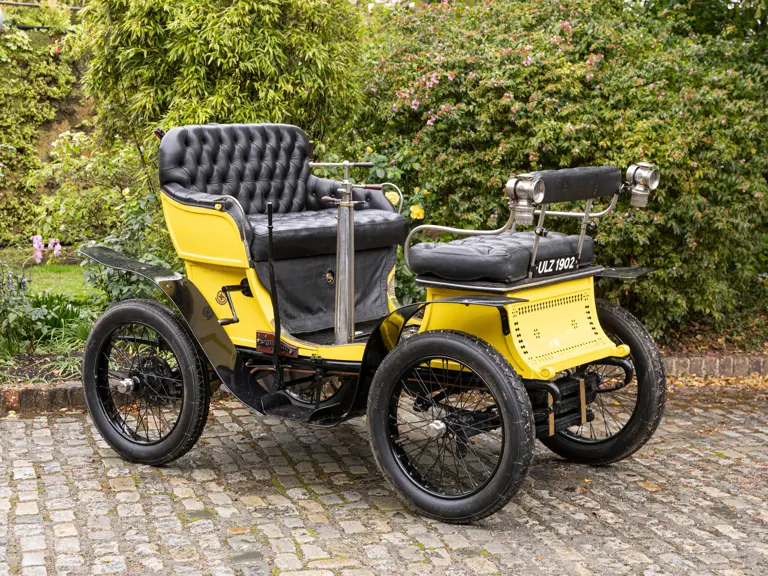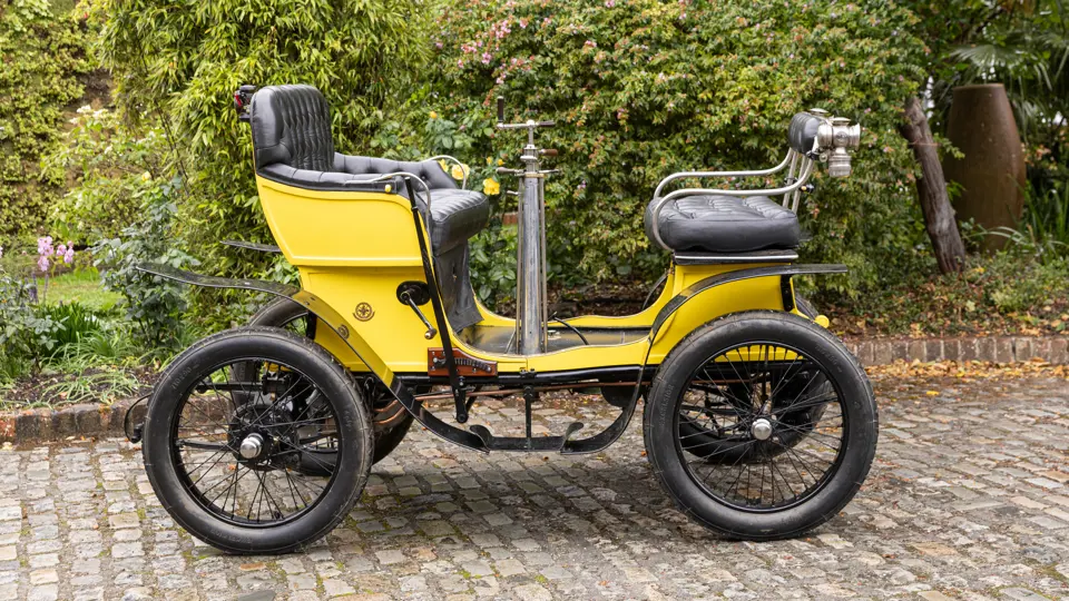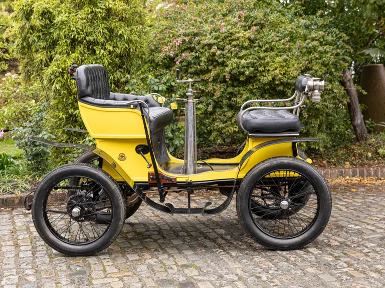 The 1902 De Dion-Bouton Type L Vis-à-Vis Voiturette on offer represents the final development of a model that received a series of iterative improvements as production continued. As such, it offers enhanced usability thanks to its 6 horsepower, single-cylinder engine with a 90-millimetre cylinder bore and 110-millimetre stroke.