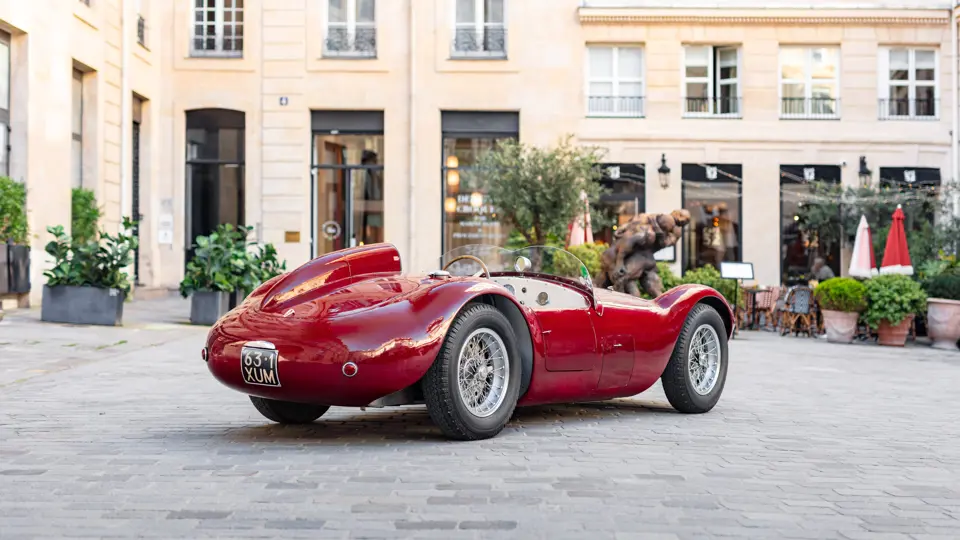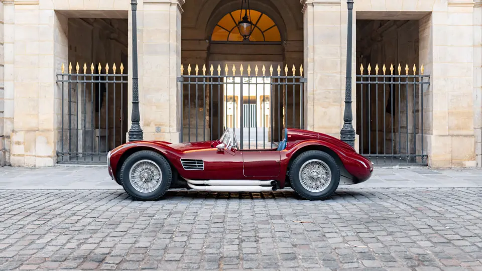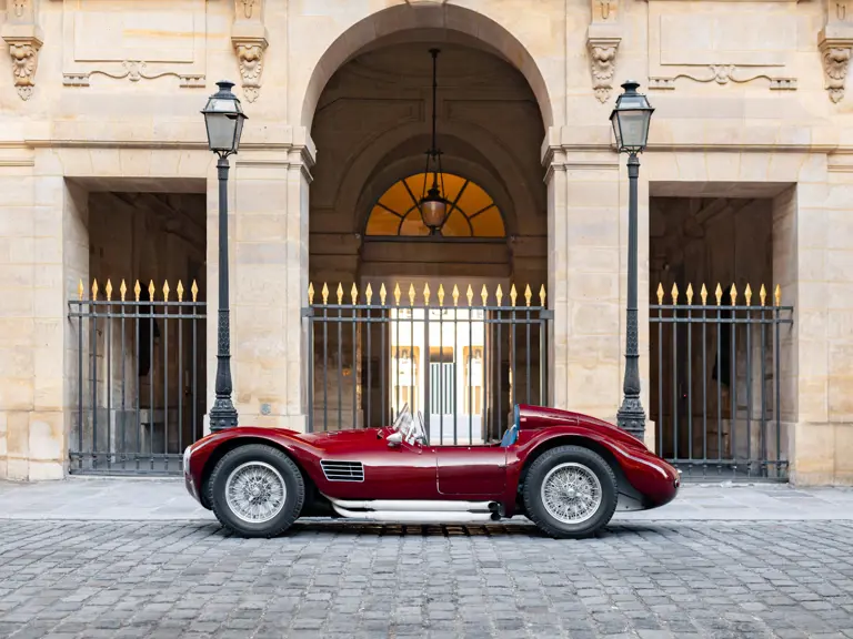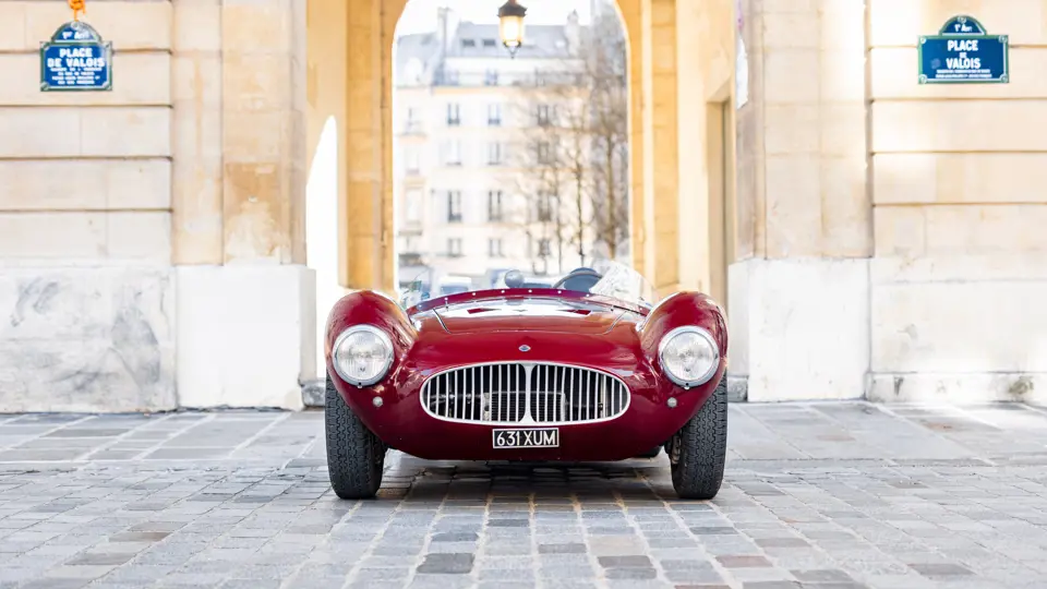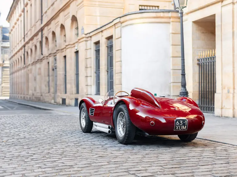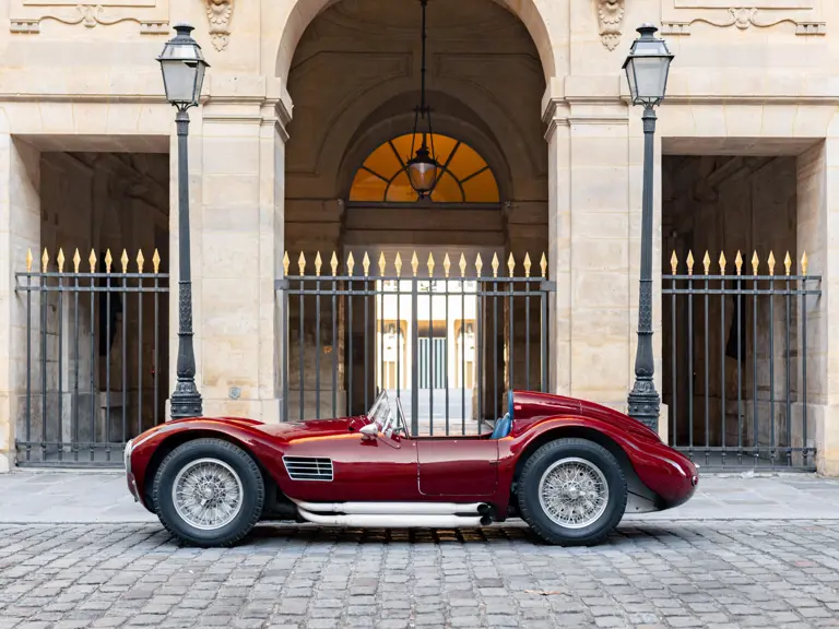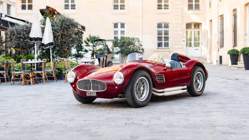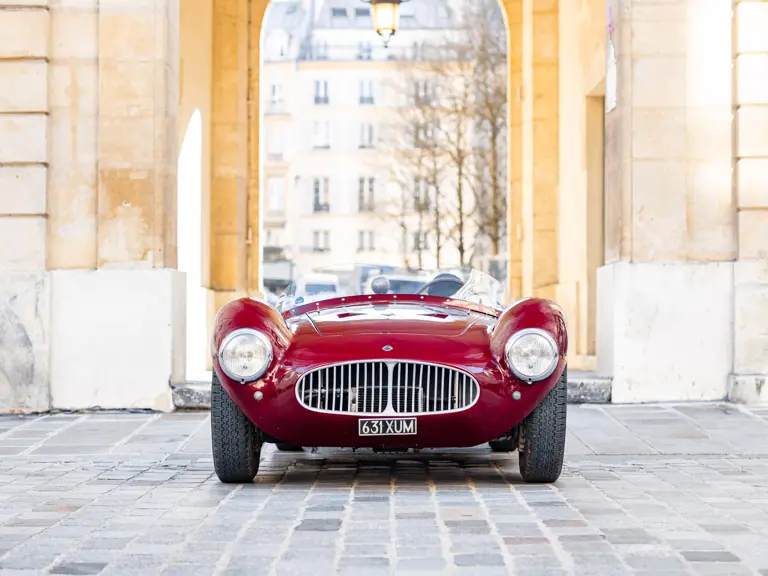 Maserati A6GCS, chassis number 2065, was one of two such cars ordered from Maserati in 1953 by the French Importers Garage Mirabeau in Paris. The sister car, chassis number 2064, was retained and raced by Jean Simone, who was the co-owner of Garage Mirabeau along with Jean Thepenier. Chassis number 2065 was delivered to Armand Roboly. Simone and Roboly had raced many times as co-drivers in a Jaguar C-Type. They were close friends and enthusiastic participants in French motor racing of the era.