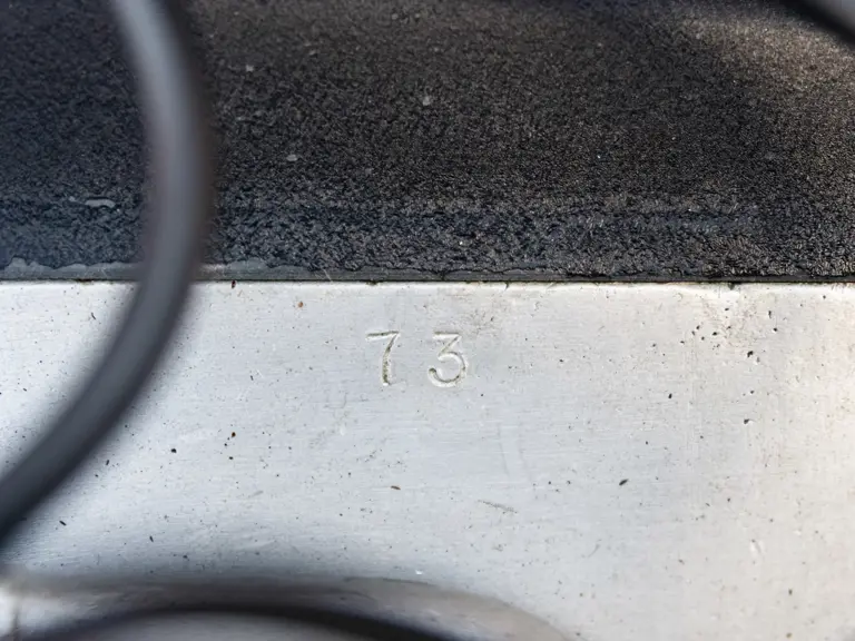 While the engine was removed for a complete rebuild, an opportunity was created to examine the car in close detail by dismantling many components such as brake drums, transmission, and chassis to reveal their mechanical story and to piece together a full understanding of what has happened to the car technically since its delivery in 1954. In summary, it was revealed that many components of the car had never been fully disassembled before. Wear patterns and the condition of internal components showed a perfect consistency. These include the brake drums, the sand cast block, and the cylinder head (which still bore the original steel wires used to hold the cores during casting).